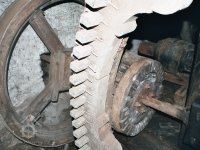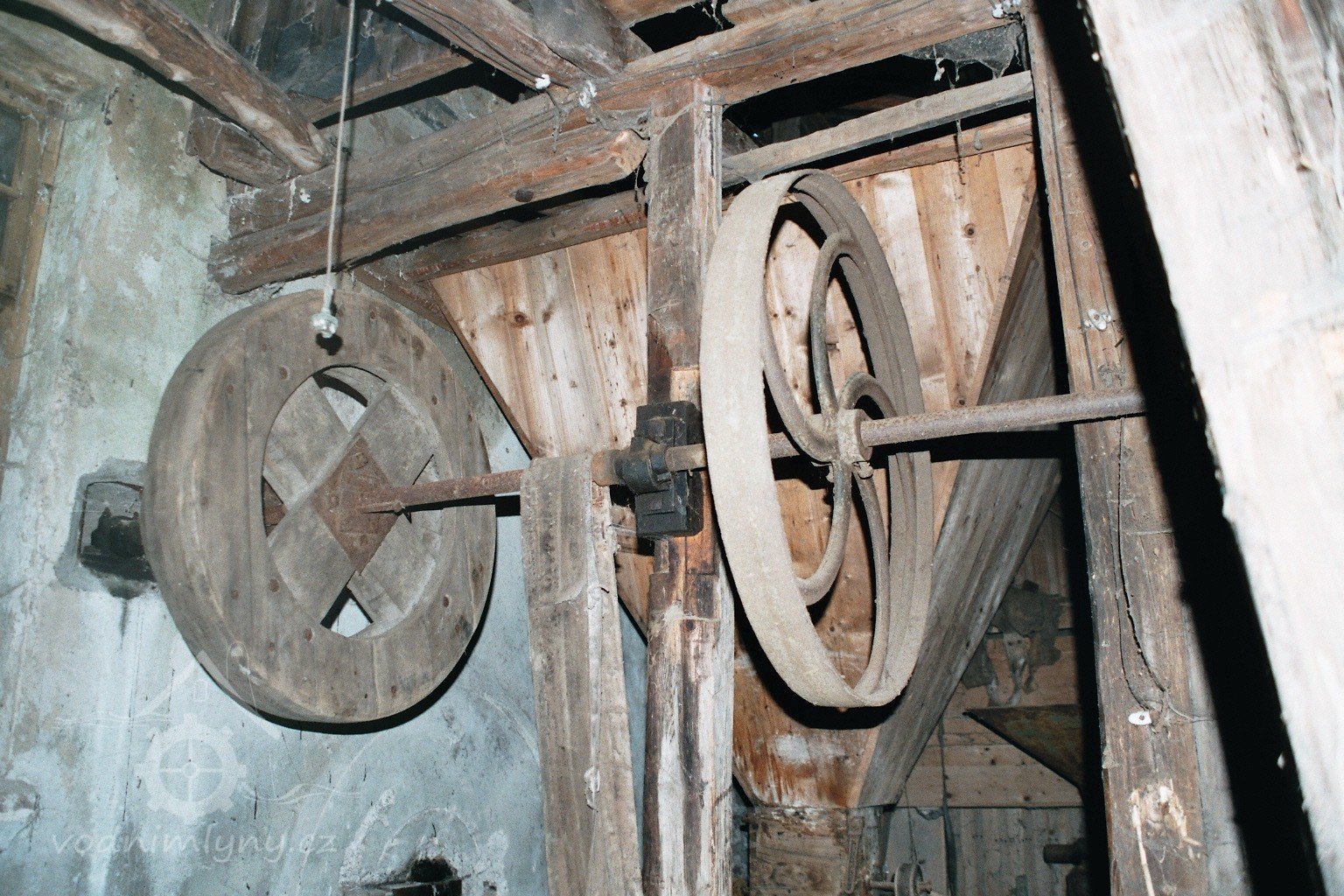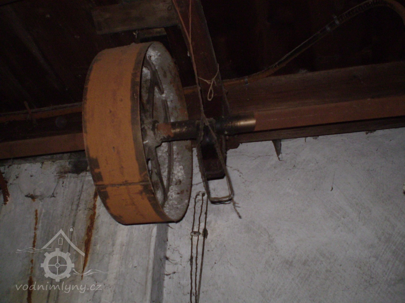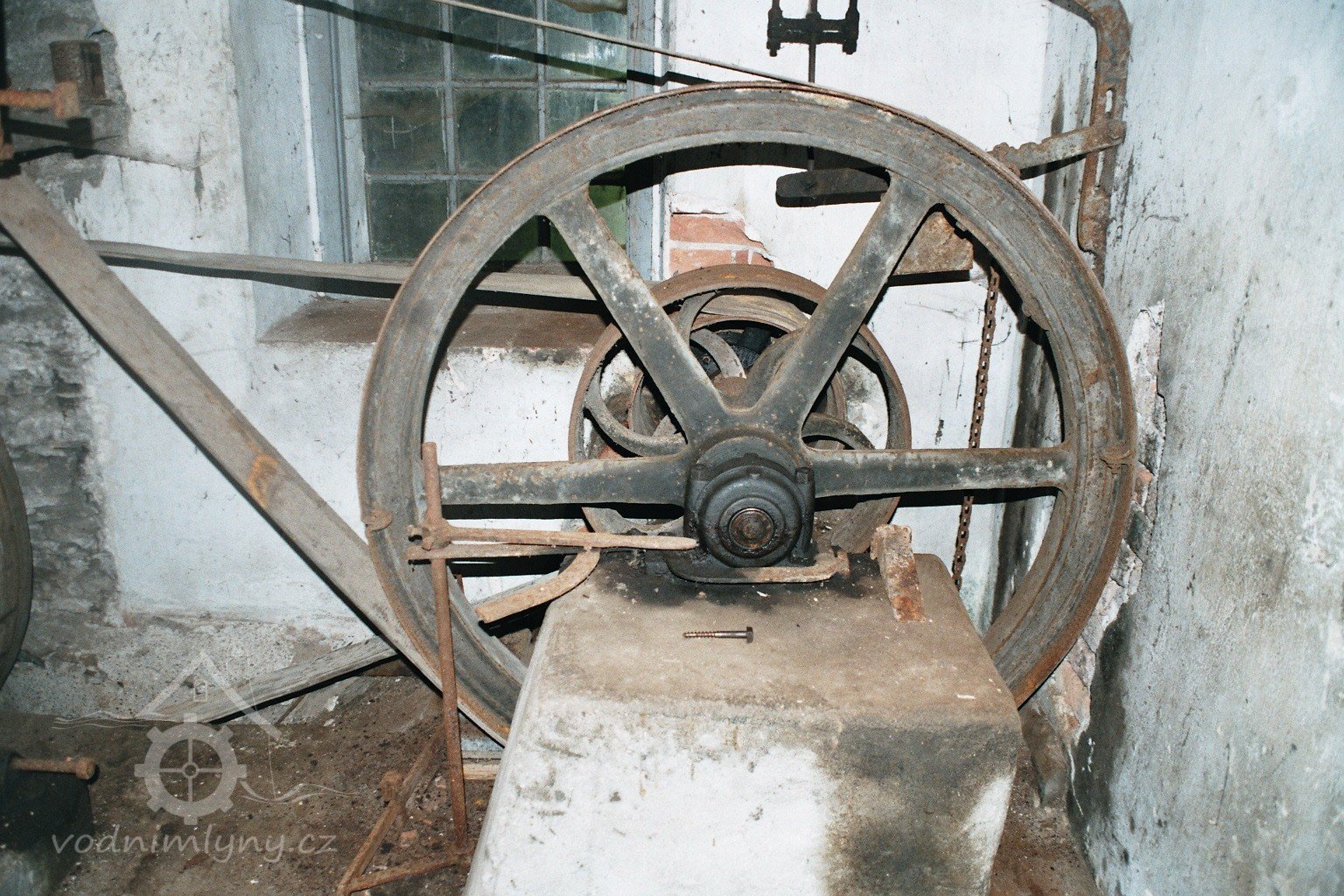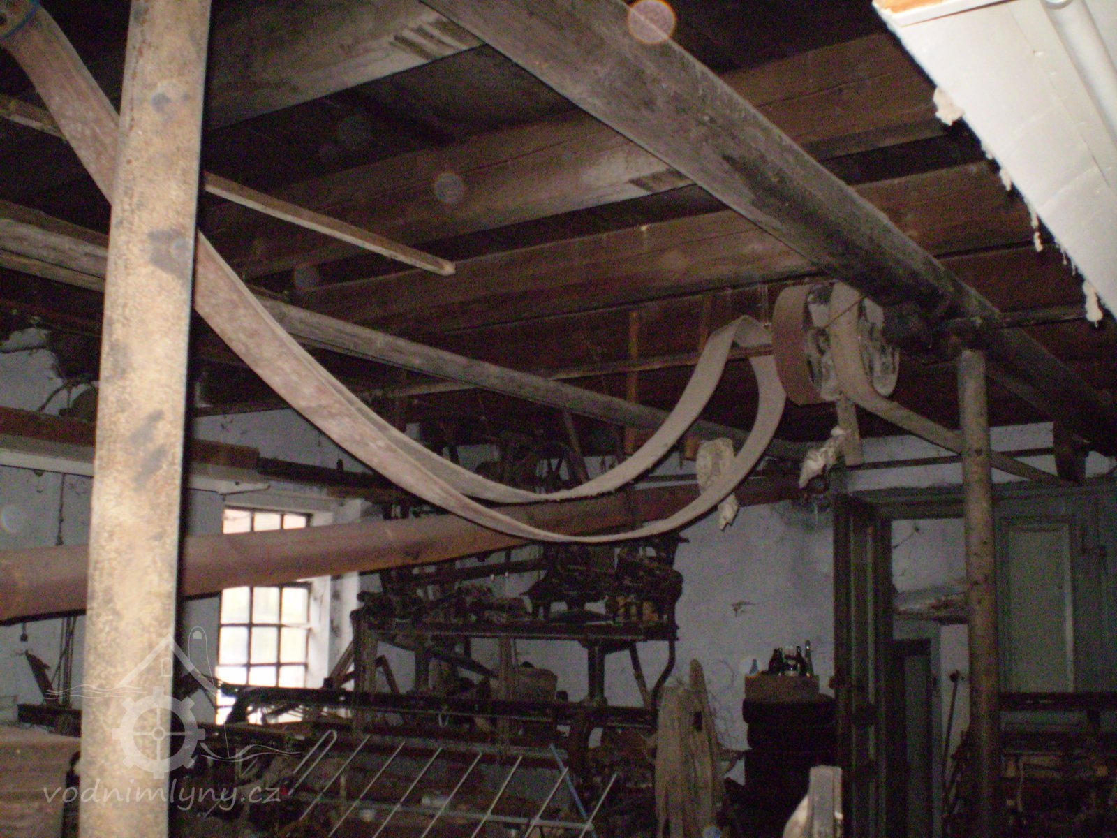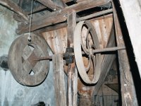 transmise pohonu mlýna, 2008, © David Veverka, (Prvky na obrázku: transmise, řemenice, převody)