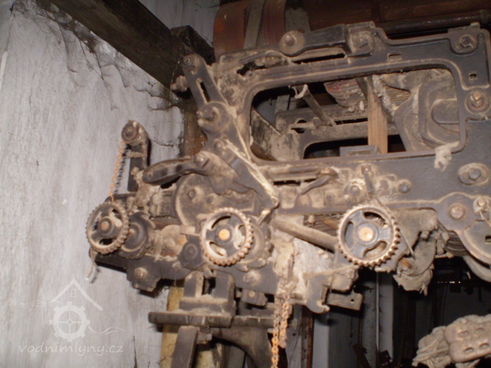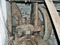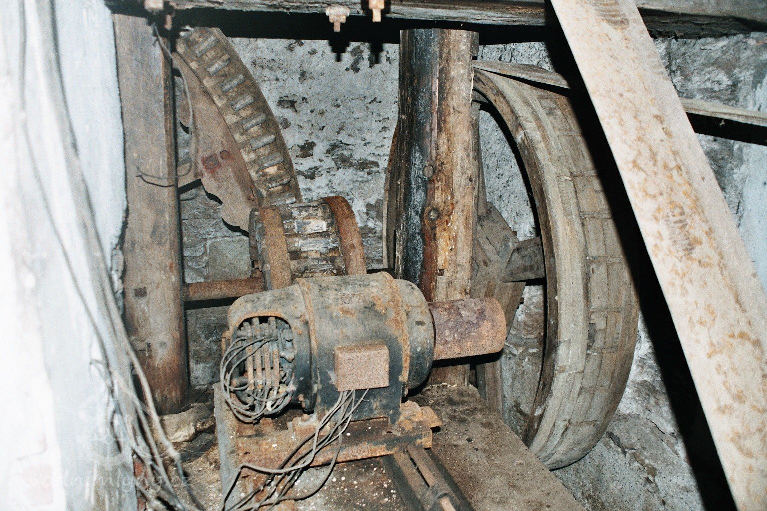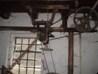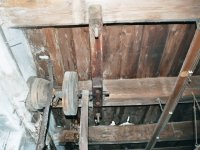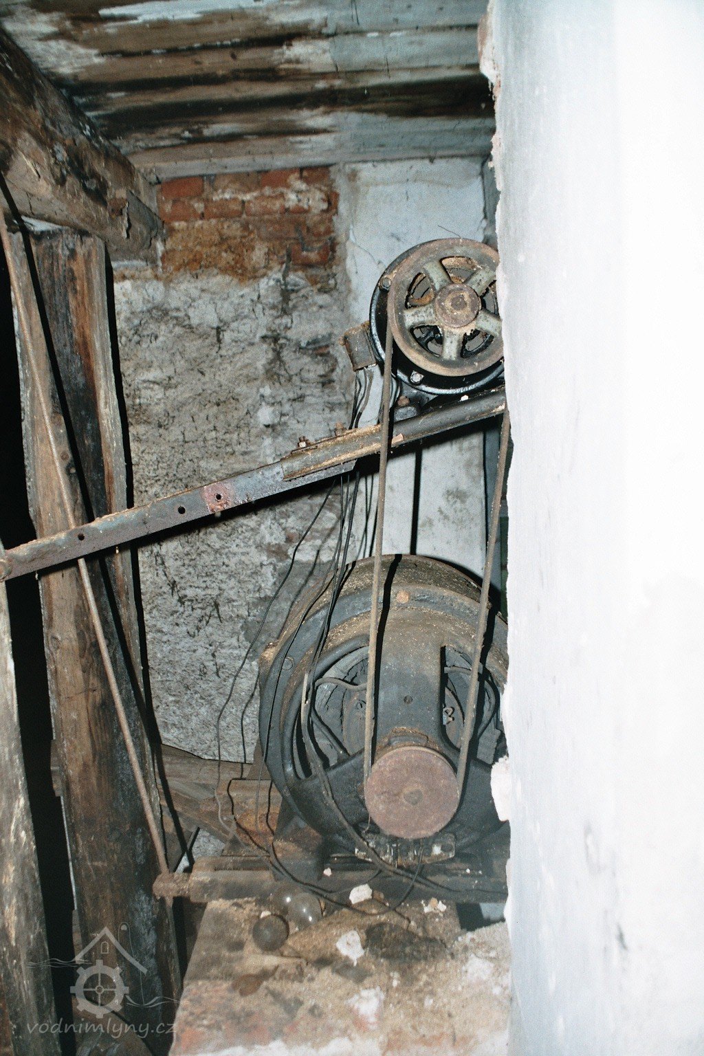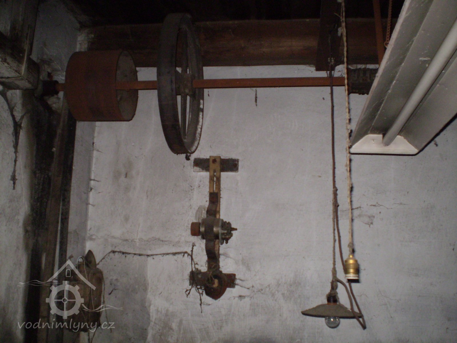 transmise pohonu mlýna, 2008, © David Veverka, (Prvky na obrázku: transmise, řemenice, převody)