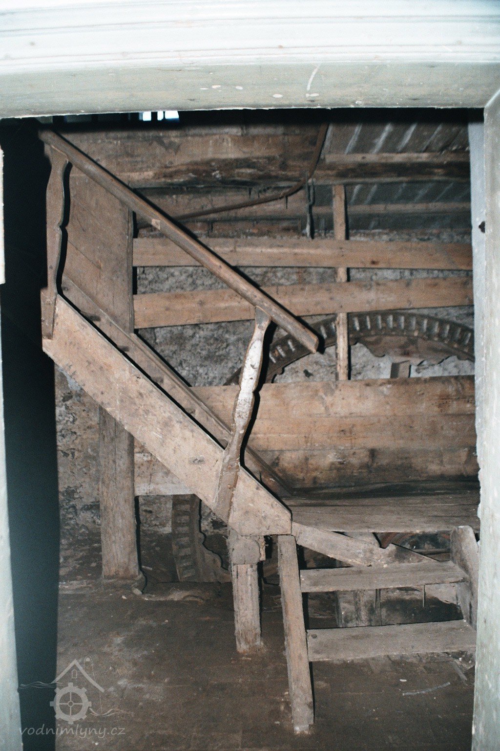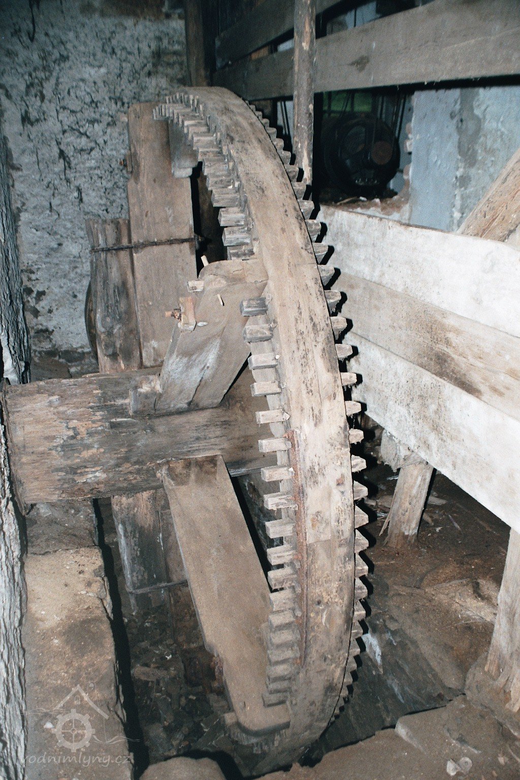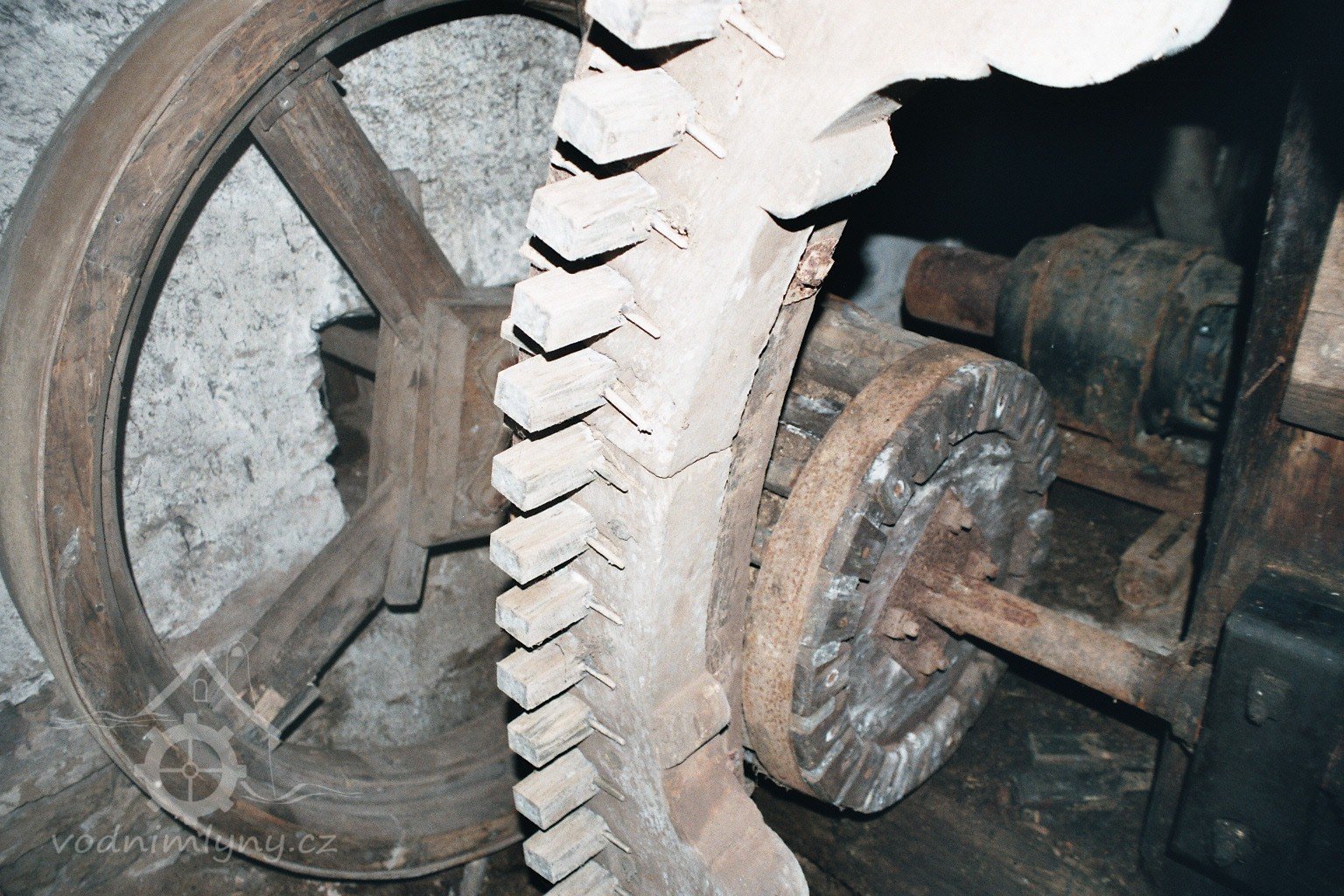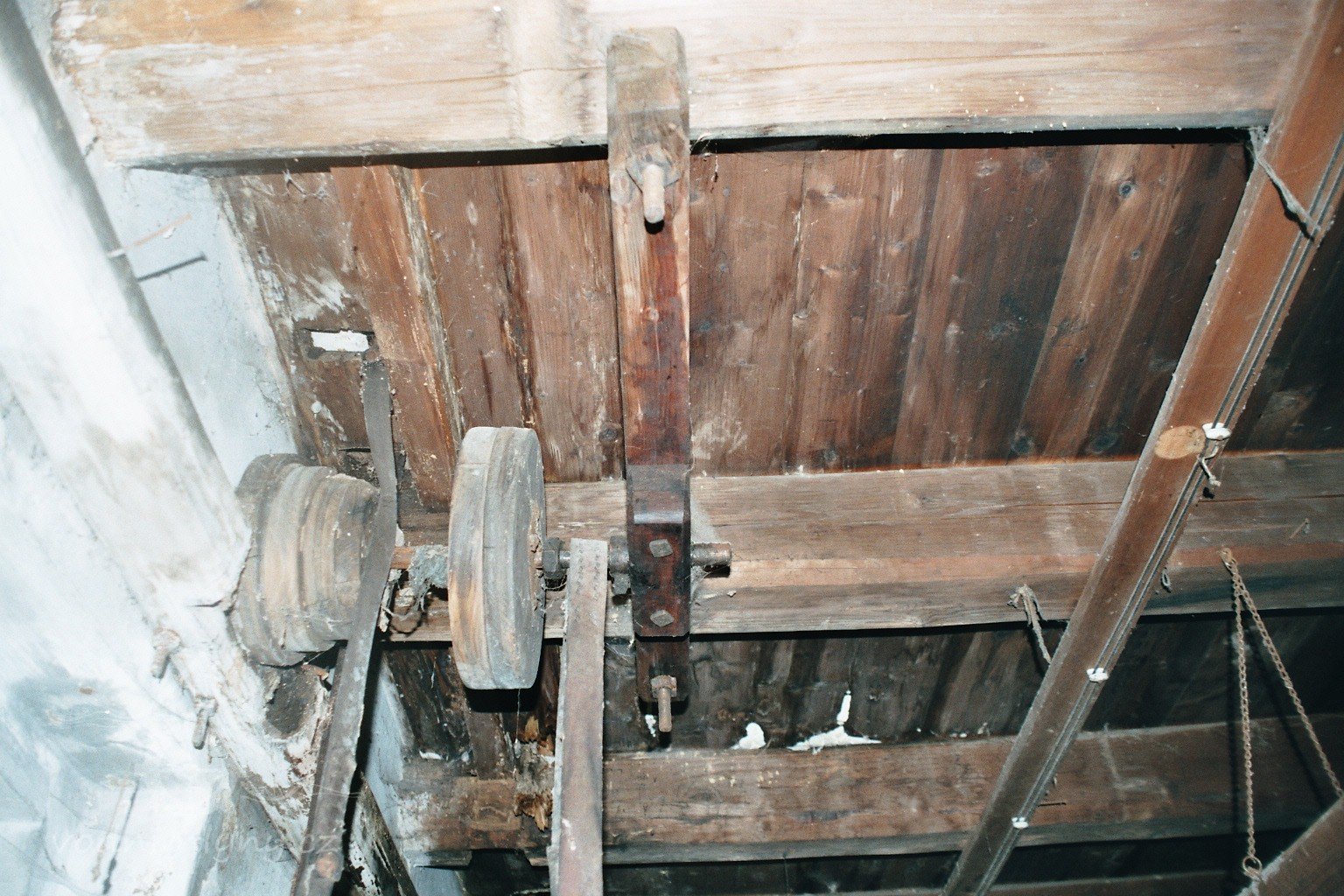 transmise pohonu mlýna, 2008, © David Veverka, (Prvky na obrázku: transmise, řemenice, převody)