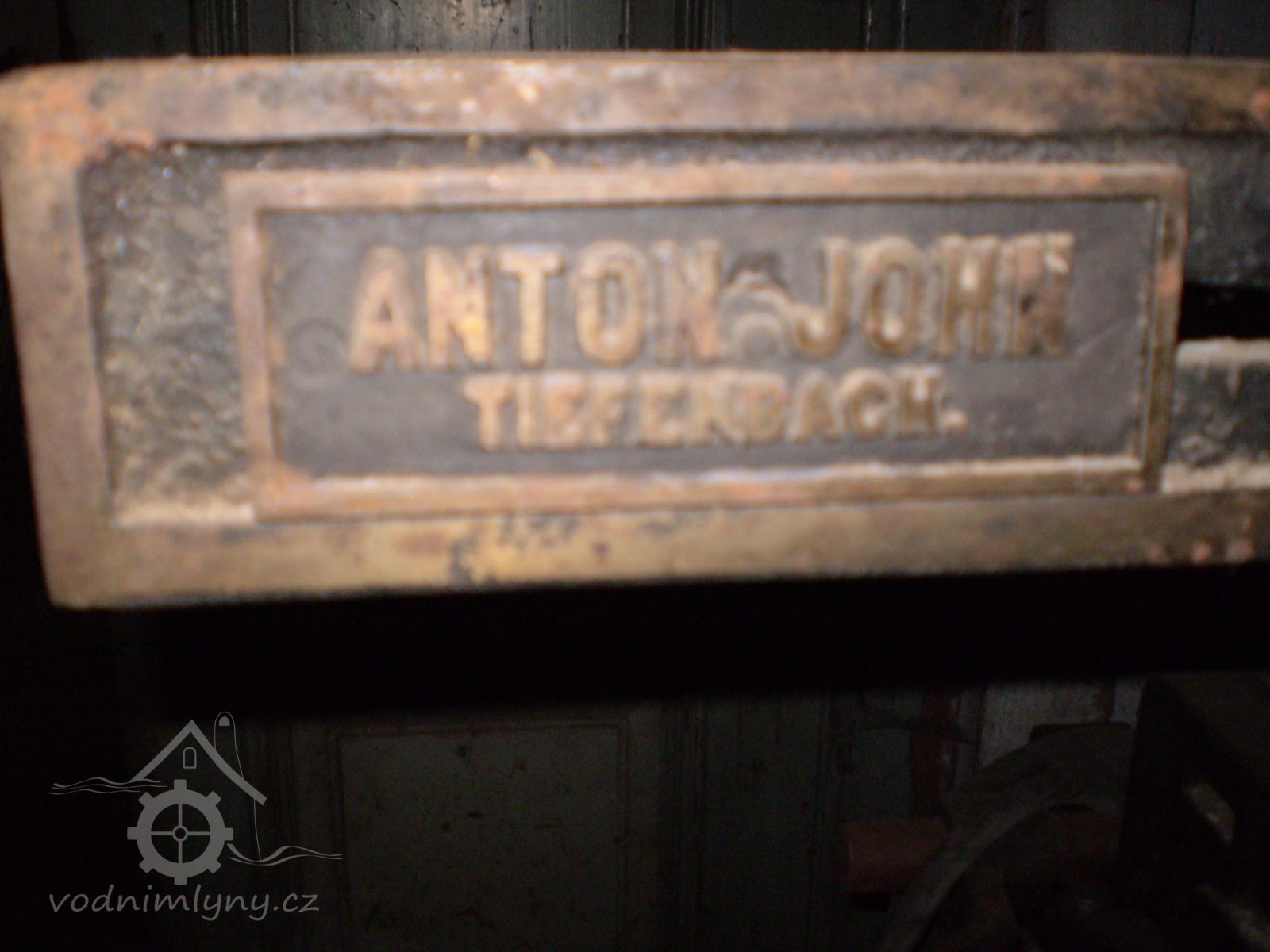 štítek výrobce mechanických stavů - Anton John, Tieferbach, 2006, © Tereza Pavlíčková, (Prvky na obrázku: značka výrobce na technologickém vybavení)
