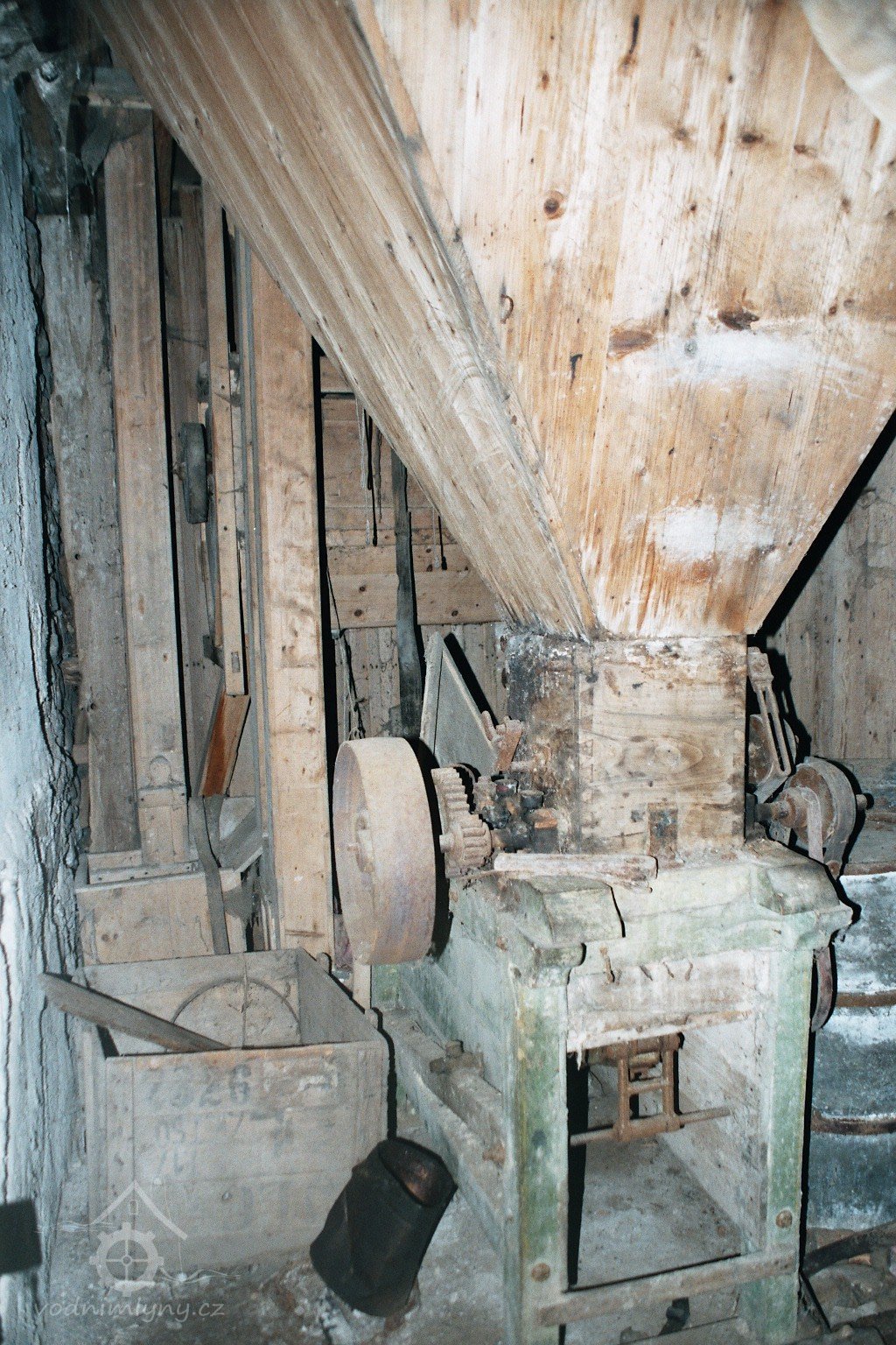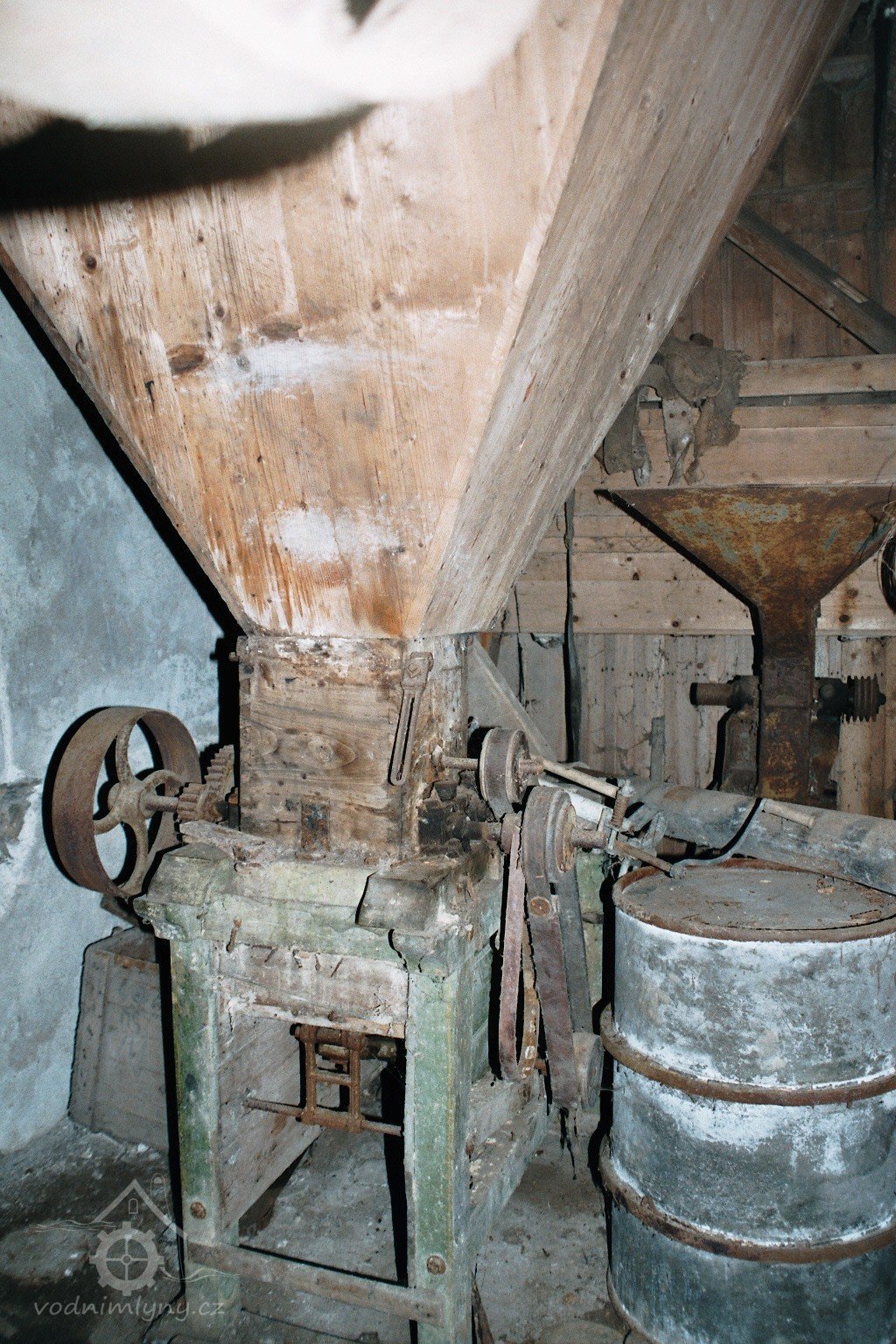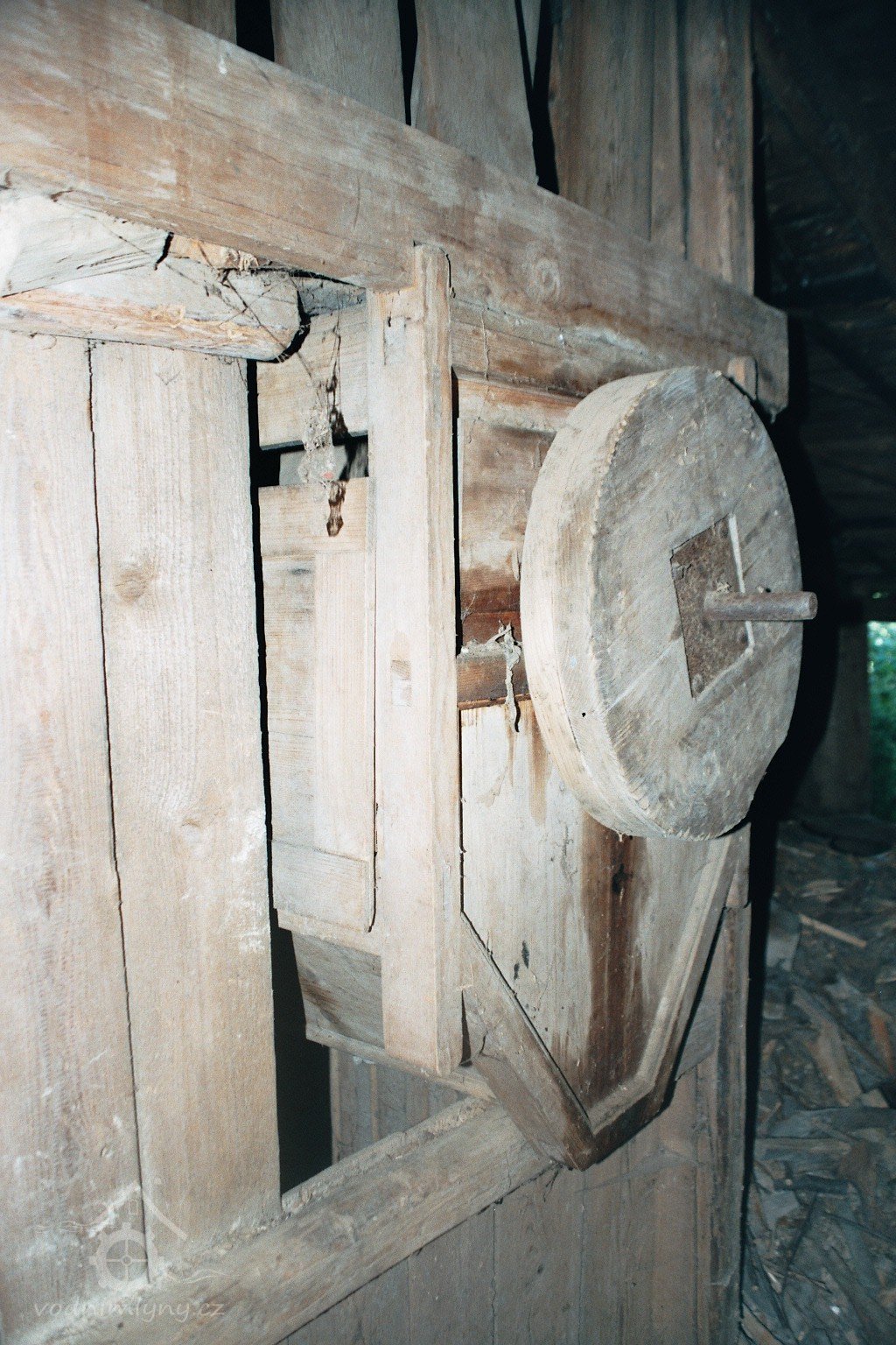 unikátní mlecí stolice domácí výroby se spodním proséváním žejbrem přes excentr, 2008, © David Veverka, (Prvky na obrázku: válcová stolice)