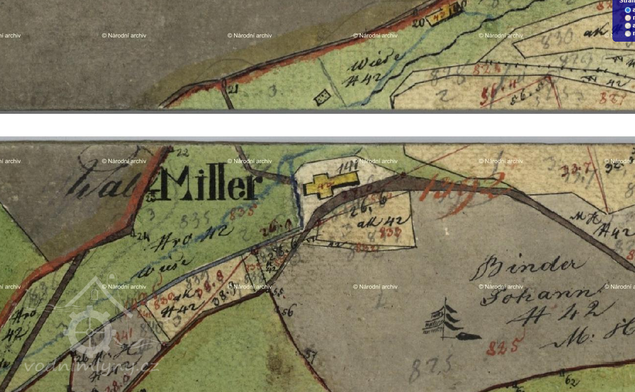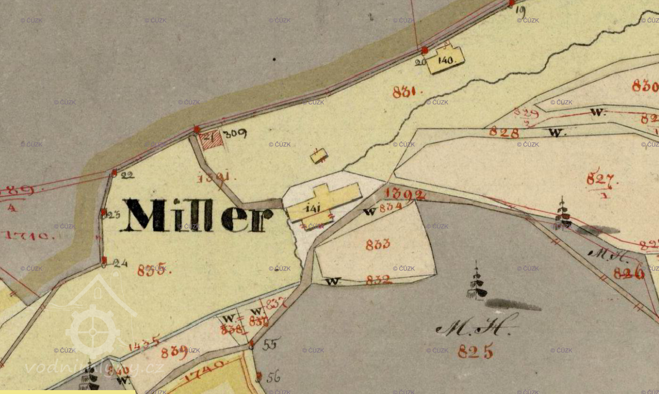 -dům čp.42 /st.p.141-obytné stavení a mlýn.Dnes má parcela číslo 2080,