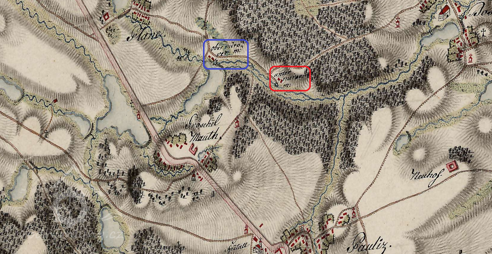 Pustý mlýn se nachází v západním výběžku katastru Boskovštejna.