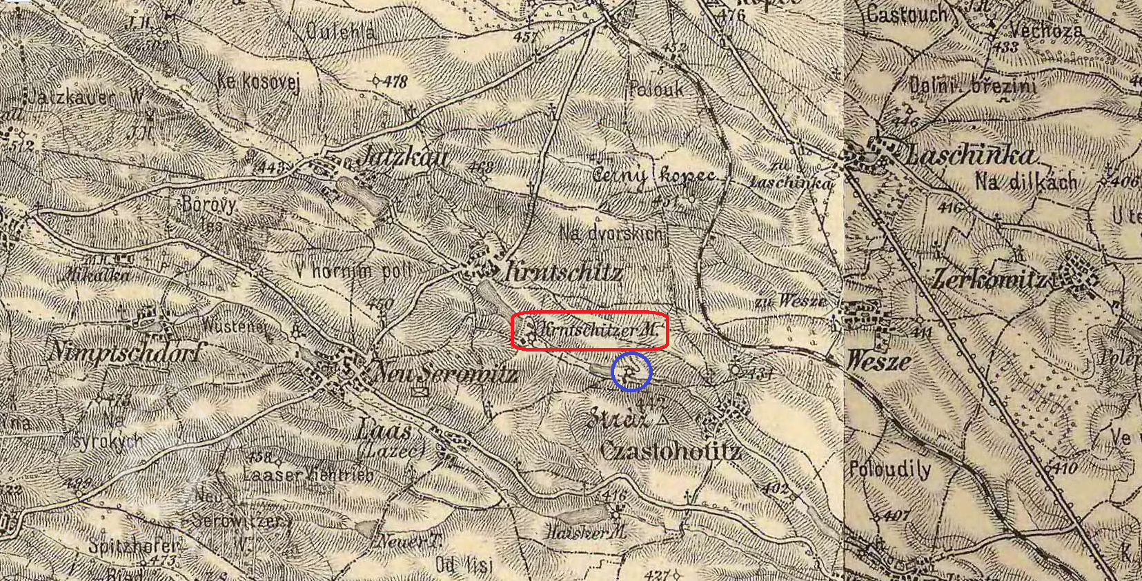 v Krnčicích dvůr s tvrzí ( zámeček?) s třemi lány polí, dvěma dvorci, svobodnou