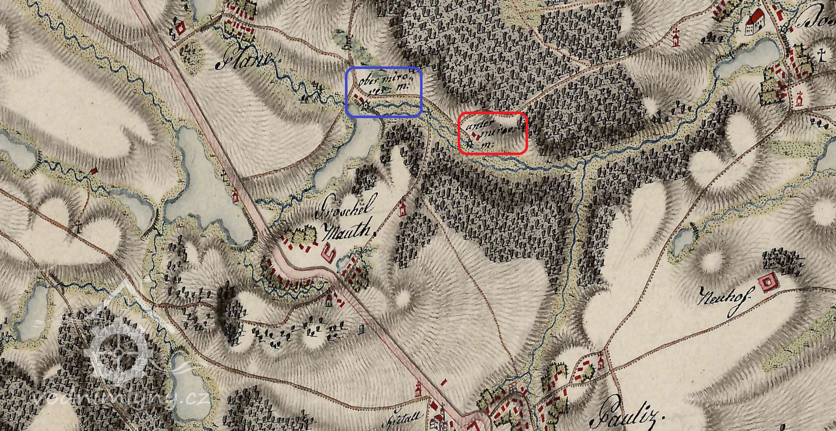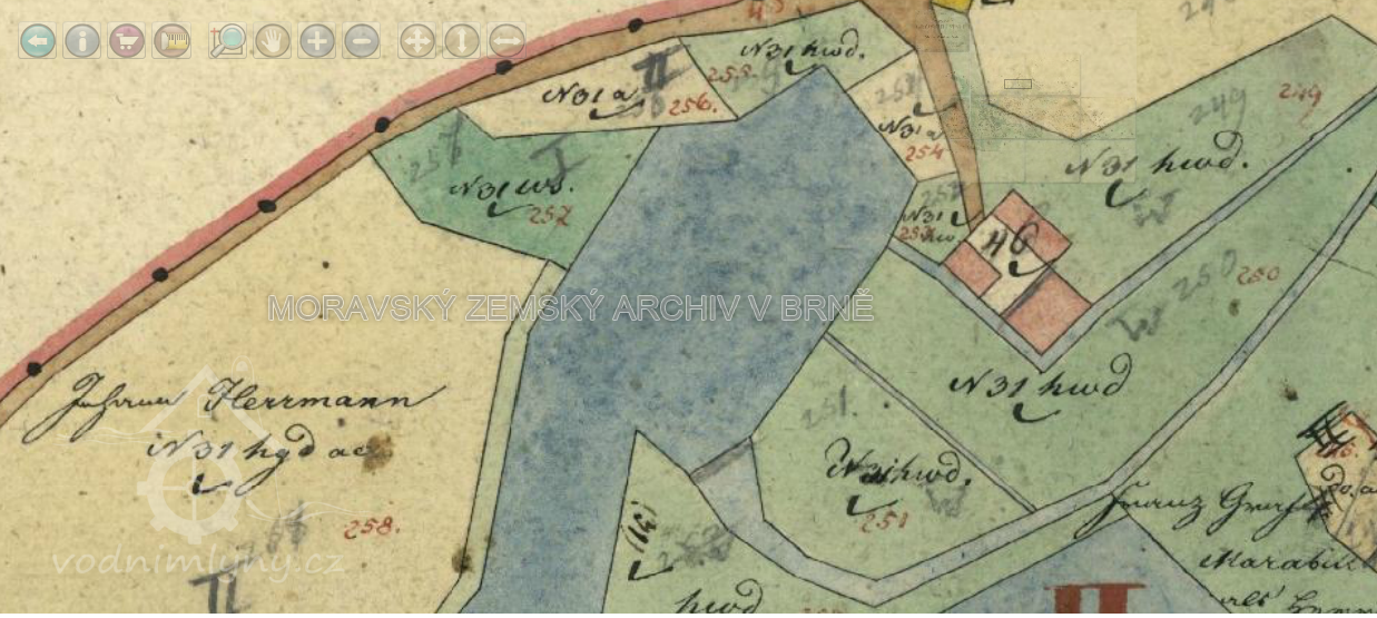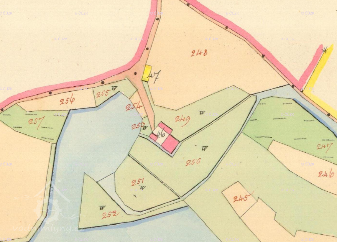 Popis1930: 1 kolo na svrchní vodu, hltnost 0,171 m3/s, spád 4,3 m, výkon 6 HP