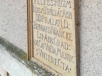 Nápis ve štítu, 06 2021, © Jan Moravec, (Prvky na obrázku: epigrafické památky (nápisy, datování aj.))