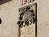 Deska s erby a letopočet 1922, 06 2021, © Jan Moravec, (Prvky na obrázku: epigrafické památky (nápisy, datování aj.), náhrobky, pamětní desky)
