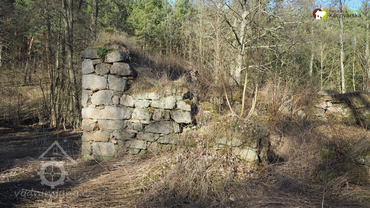 Zříceniny hlavní budovy s odpadním kanálem, 03 2017, © Památky a příroda Karlovarska, (Prvky na obrázku: odtokový kanál)