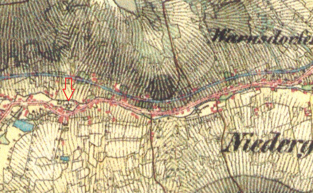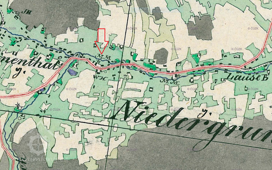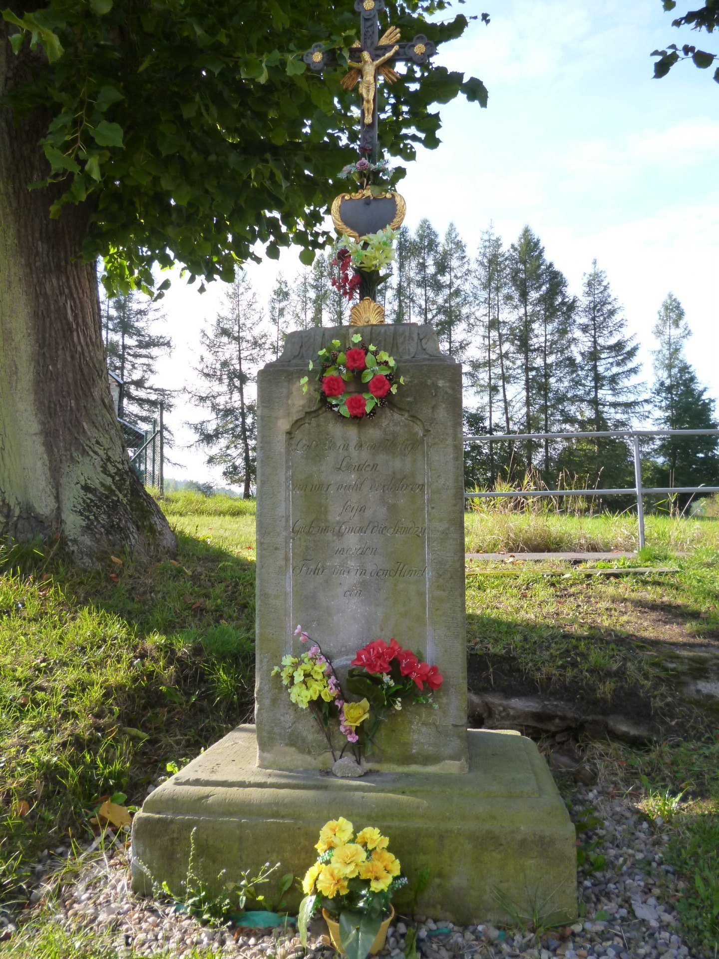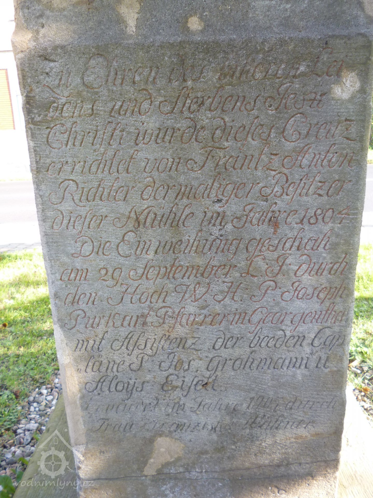 V roce 1804 nechal mlynář Franz Anton Richter zřídit naproti mlýnu na druhé straně cesty křížek dle textu na podstavci na uctění utrpení a smrti Ježíše Krista (viz ikonografie).