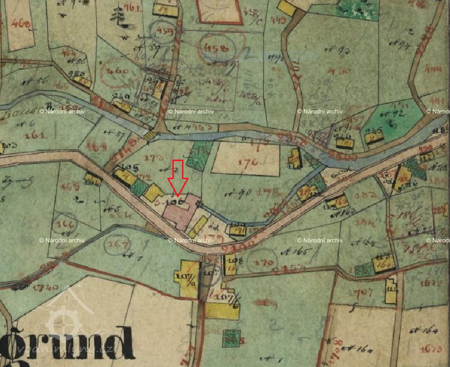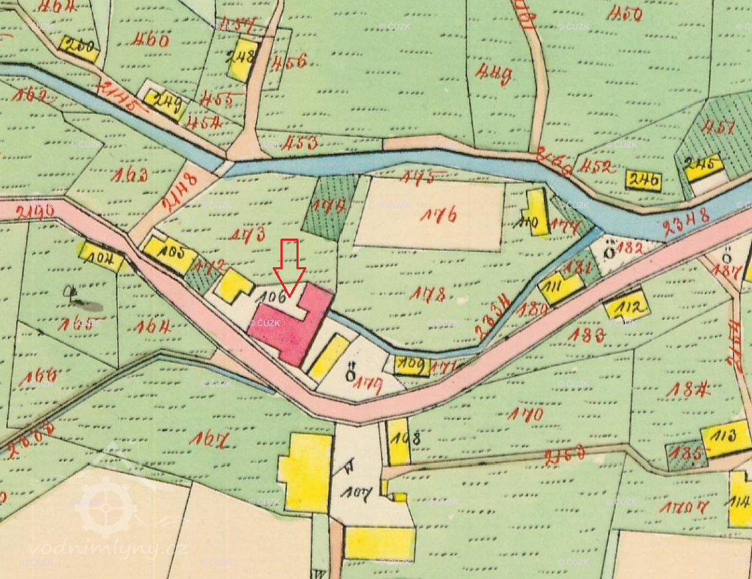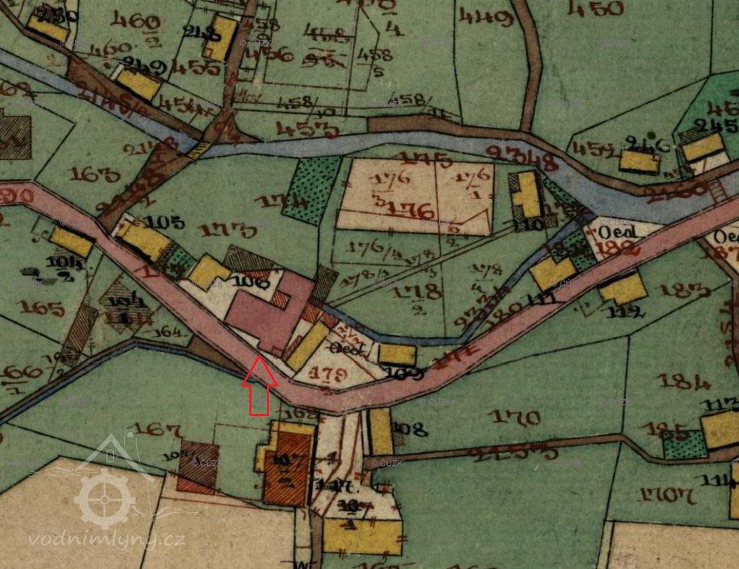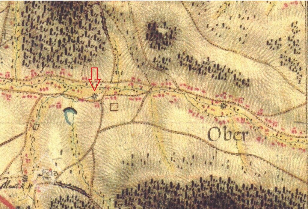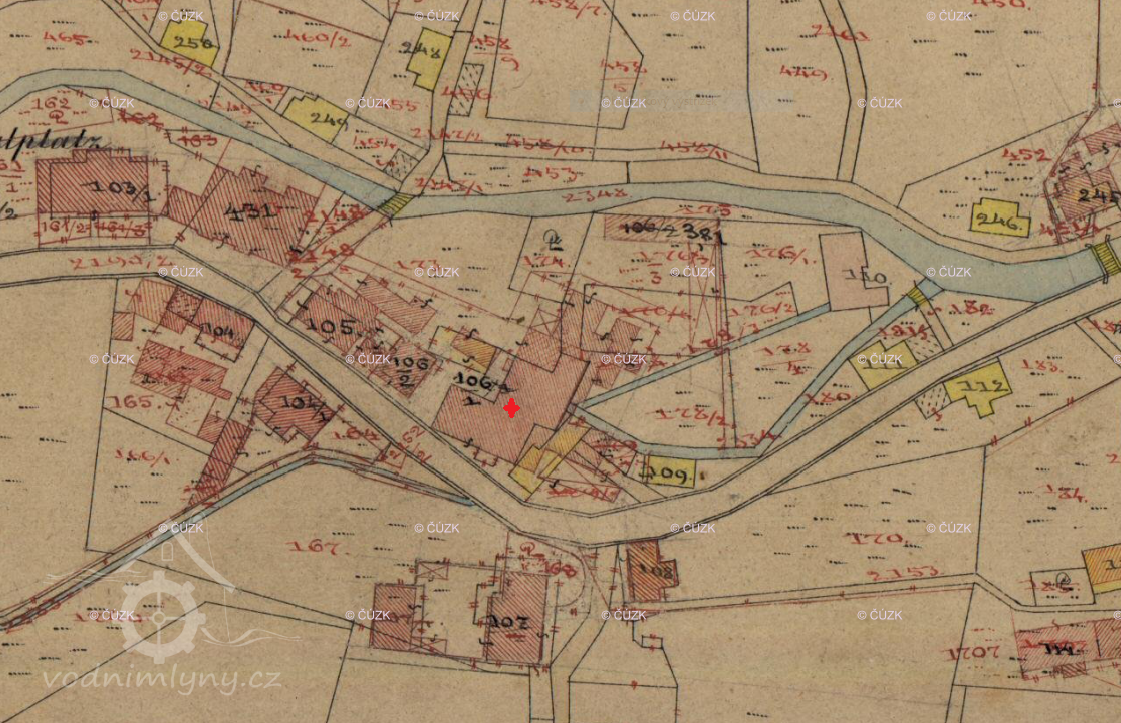 V roce 1804 nechal mlynář Franz Anton Richter zřídit naproti mlýnu na druhé straně cesty křížek dle textu na podstavci na uctění utrpení a smrti Ježíše Krista (viz ikonografie).