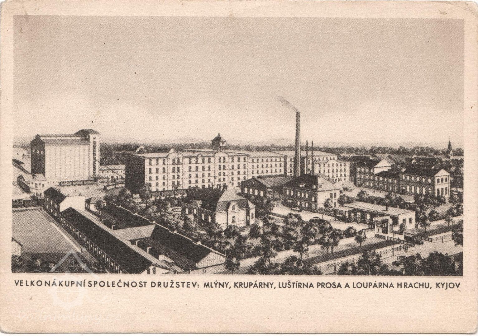 V období, kdy vojska maršála Malinovského dobyla Bratislavu a nezadržitelně se blížila k našemu městu, Němci evakuovali také kyjovské mlýny a nejdůležitější součástky technického zařízení odvlekla. Tak také odvlekli skládací zařízení pro mlecí stolice. Za pomoci sovětských jednotek bylo toto důležité technické zařízení nalezeno na nádraží v Přerově a neprodleně vráceno zpět do kyjovského mlýna, takže provoz mlýna mohl být již v krátké době po osvobození obnoven. Zásluhu o obnovení provozu mají zaměstnanci mlýna, kteří projevili velké pracovní úsilí při instalování technického zařízení a jeho uvedení do chodu.