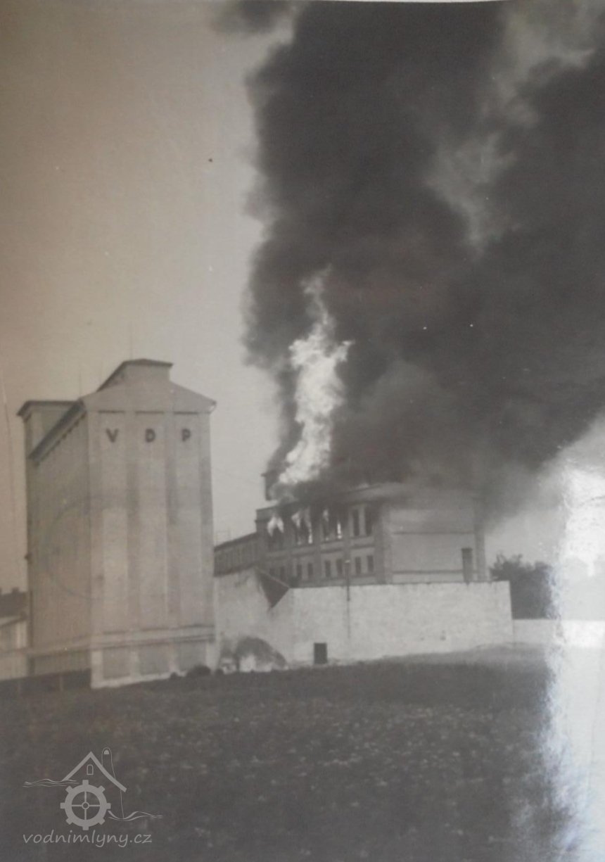 Krátce po převzetí správy mlýna do německých rukou v roce 1940 byl v následujícím roce 1941 zachvácen požárem. Zcela zničen byl pšeničný a žitný mlýn, zachráněna byla jen výroba krup, jáhel a hrachu. Německými orgány bylo neprodleně zahájeno rozsáhlé pátrání po příčinách požáru. Usuzovalo se, že požár byl založen. Usuzovalo se, na sabotážní akci avšak přes veškeré úsilí pátracích orgánů pachatel zjištěn nebyl.