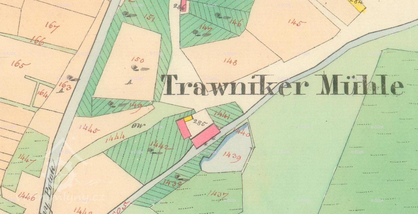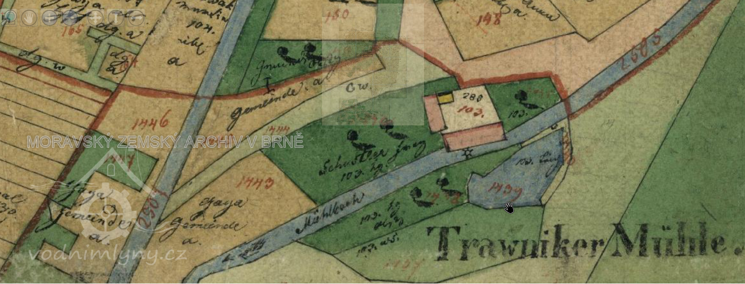 "1530 - Stál pod městem Kyjovem mlýn, zvaný Volkový, asi dnešní t. zv. Trávnický mlýn"
