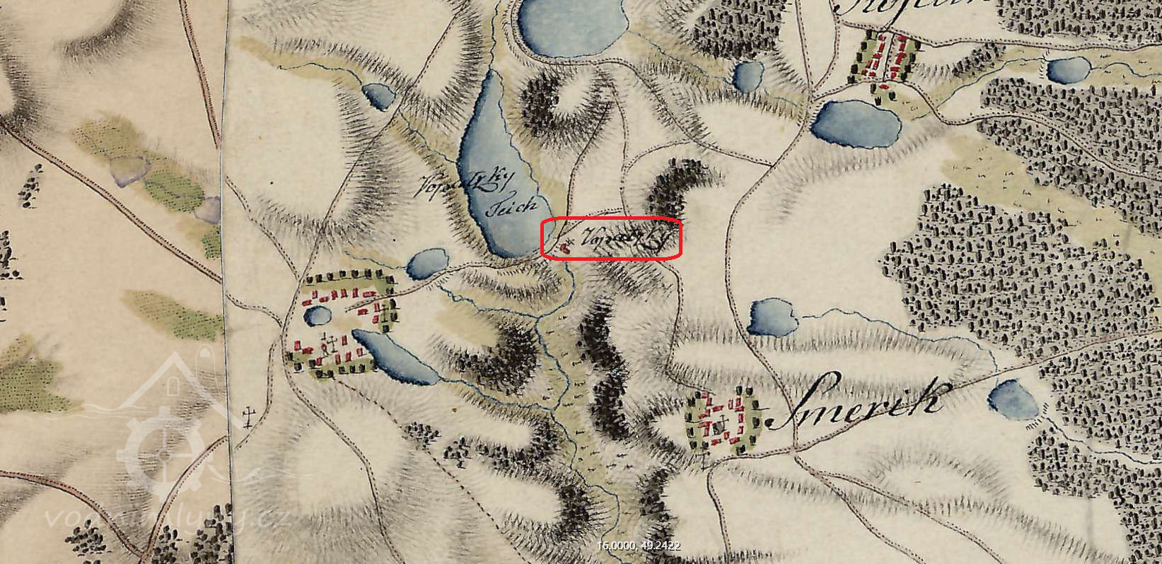 Dle map se zdá, že mlýnice byla v minulosti ubourána. (RŠ)