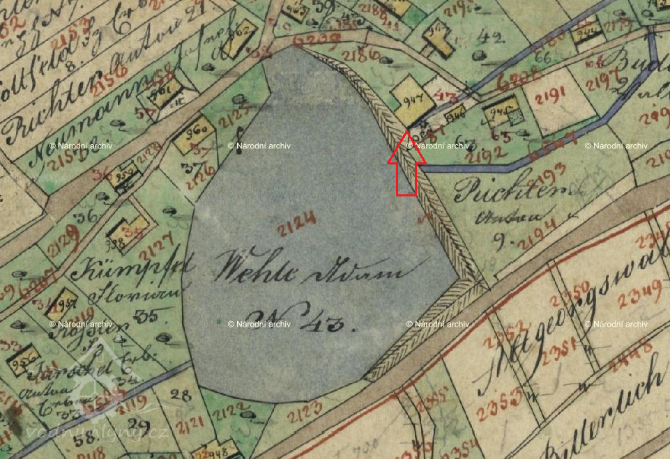 V roce 1843 byl dle údaje na indikační skice stabilního katastru držitelem mlýna Adam Wehle. Ten se narodil roku 1799 v sousedním v Sasku a v mladém věku přišel do Čech, kde zůstal. V obecní matrice je k datu 28. 7. 1846 zápis o sňatku tehdy ovdovělého mlynáře Adama Wehleho (věk 47 roků), který se po smrti první ženy Magdaleny oženil s Marií Theresií Engelmann (48 roků), u které je uvedeno, že byla hospodyní na tomto mlýně.