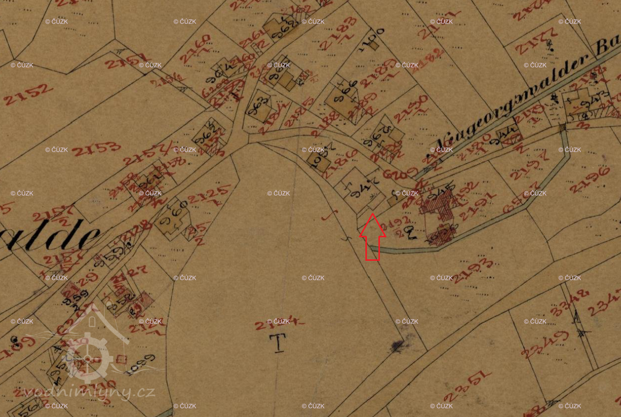 V roce 1771 dostal při číslování domů čp. 43. V té době zde hospodařil mlynář Josef Kümpfel (narozen 1729) s manželkou Marií Elisabeth (1727). V soupise poddaných pro obce Nový Jiříkov z roku 1773 je zde mlynářský pár uveden společně se 4 syny Josefem (stár 20 roků), Franzem (18), Antonem (16) a Ferdinandem (14).