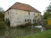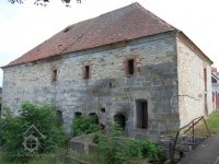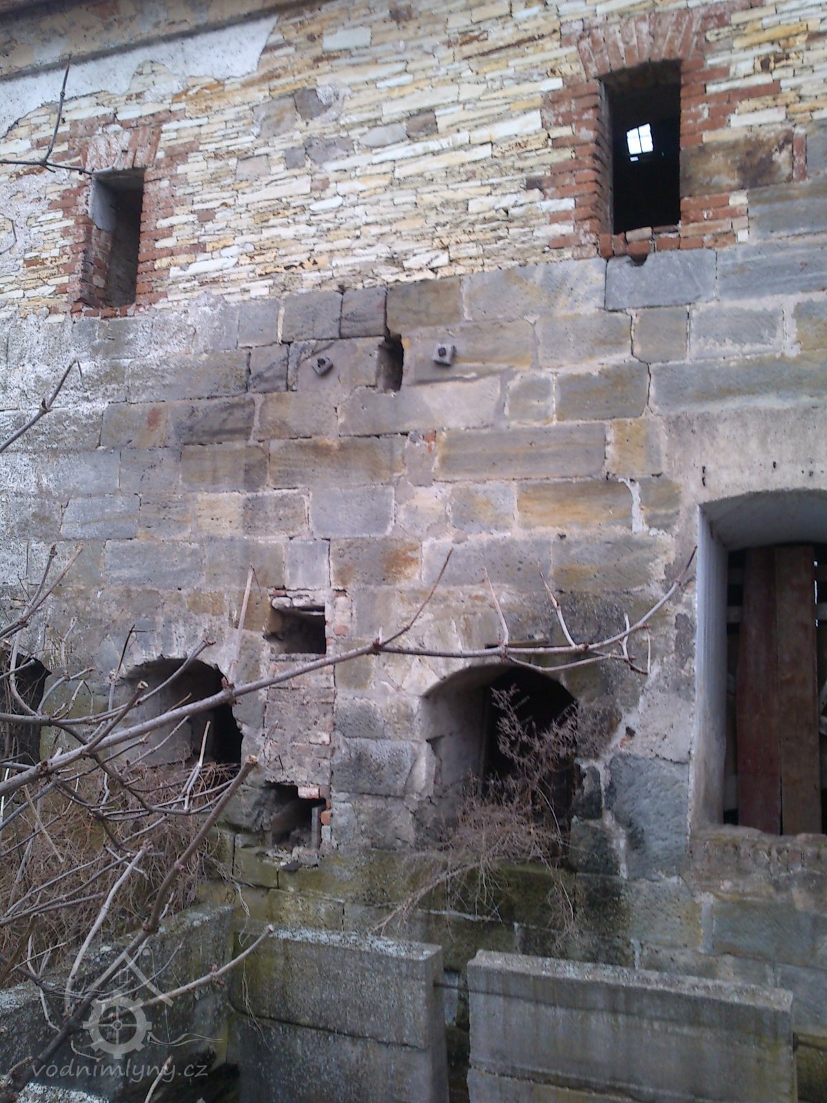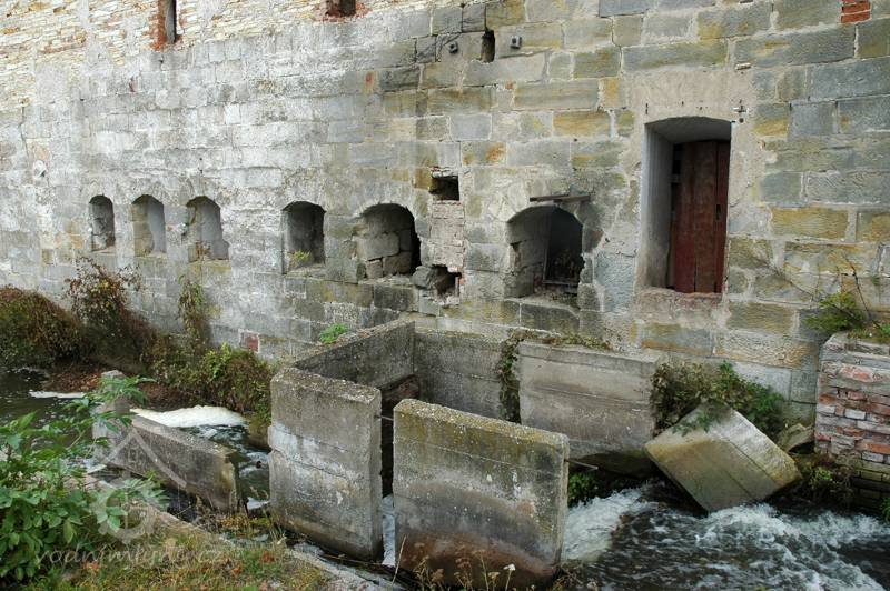 Pohled na mlýn, 07 2009, © Jiří Mrázek, (Prvky na obrázku: prostup pro hřídel vodního kola)