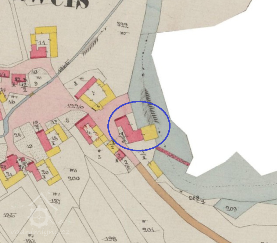 Dne 18. srpna 1853, Zl. 3279 bylo na základě dědického řízení ze dne 12. února 1853, č. 4337, vdově Franzisce Traxlerové přiznáno vlastnické právo k druhé polovině mlýna.