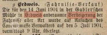 Dne 9. února 1901 bylo zahájeno konkurzní řízení proti Andreasi Gablerovi, dne 12. února 1901 proti Marii Gablerové a zaznamenáno v katastru nemovitostí. Tato skutečnost byla také zveřejněna 17. února 1901 ve Wiener Zeitung.