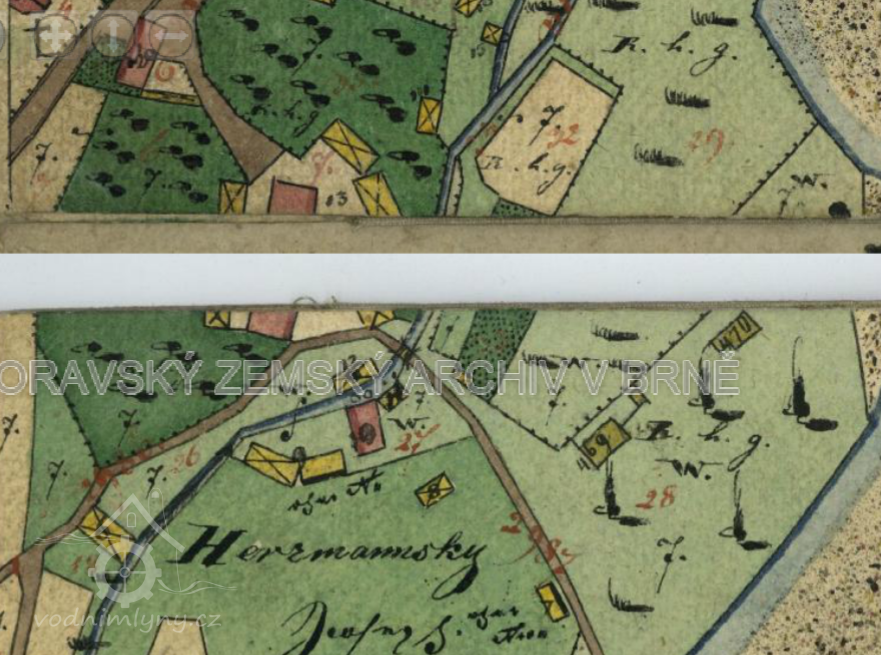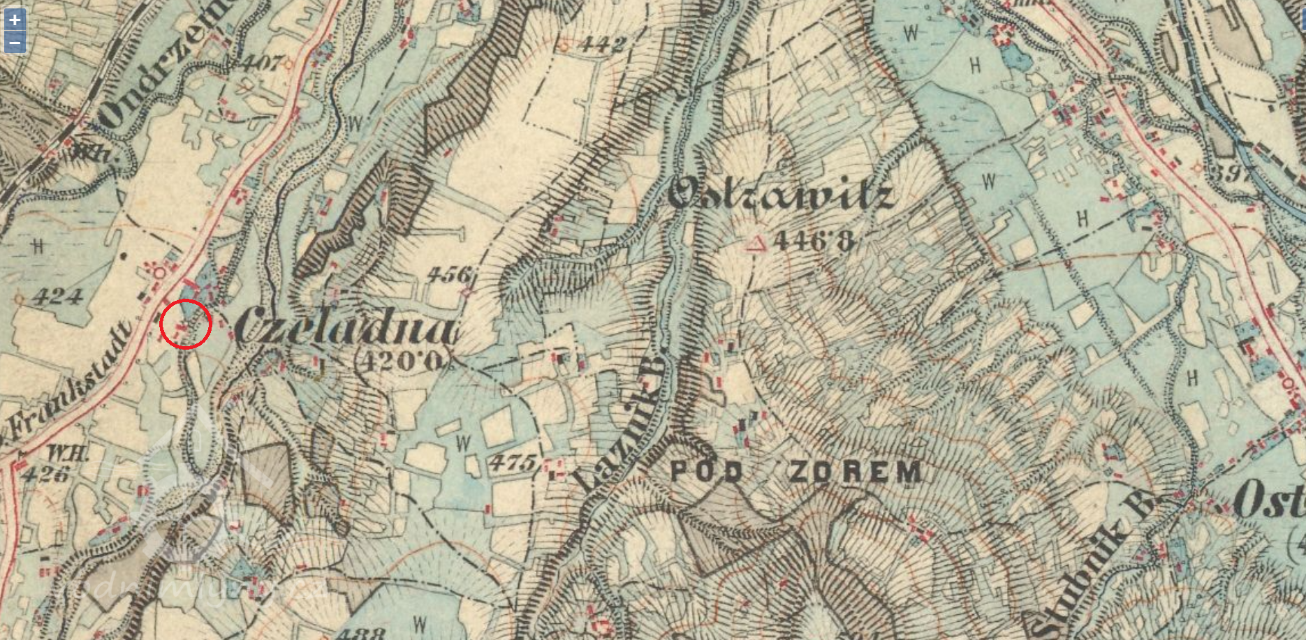 1581 urbář hukvaldského panství: „Mika, mlynář, z kusu kúpeného a zaplaceného od řeky Čeladné až po Ondřejnici, totiž na zdél z 6 ½ čtvrti a na šíř ze 2 lánův, dává platu o sv. Jiří …4 gr., o sv. Václavě též. Též on z mlýnu múčného vnově ustaveného dává platu stálého o sv. Jiří … 25 gr. 5 d., o sv. Václavě též. Též on z kusu kůpeného a zaplaceného od Ondřejnici až po řeky Čeladné, totiž na zdél 6 čtvrti a na šíř 4 čtvrti, dává platu o sv. Jiří … 4 gr., a o sv. Václavě též.“
