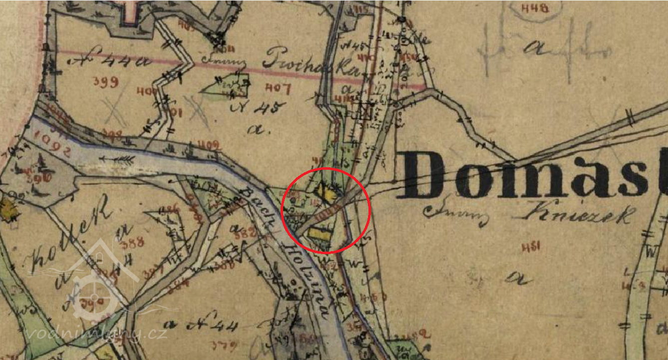 Karolinský katastr (1718 – 1729): v Dolních Domaslavicích jmenovány pouze 2 mlýny na horní vodu.