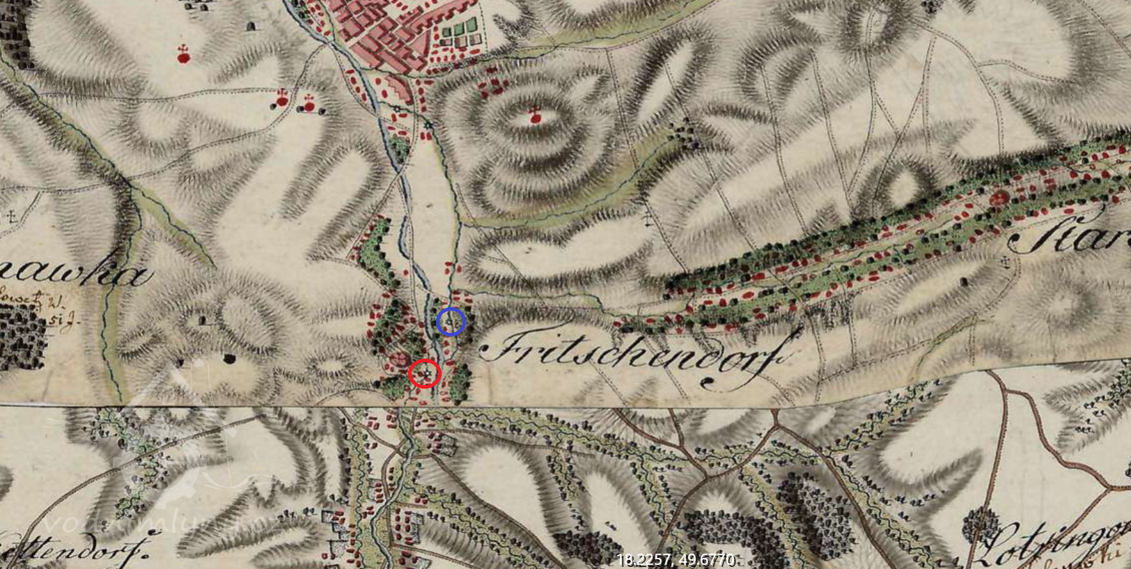 Je sice pravda, kdyby buducnie jak letošního roku žádná povodeň se nevznikla, že by tak velkého stavu zapotřebínebylo, a dosti s malým dřívím spravován býti mohl, však ale ubezpečení býti nemůžeme co ještě ten měsíc, tím míň ten rok, a zhola nic budoucí léta, následovati bude, a tak předceji takový stav vyzdvihovati se musí: Vyrozuměl jsem, jakož taky patrné je vždy, že ten můj mlýn tau škodu vymyšlenú nepřináší, dobře ale mlýn chalupnický vlastní Valentina Papeže ve Fryčovicích za mojím na 200 krokův vzdálený, k vůli kterého tak veliký stav se vzdvihovati musí a kdyby ten mlýn se kasíroval aneb na jinším místě postavený byl, polovičního stavu zapotřebí by nebylo, že ale můj mlýn viniti chtějí, příčina toho je, abych já tu vše vyjádřil, nebo o tym je Valentinovi Papežovi dobře povědomo, a proto taky P. Brušperským Saukeníkům a P. samotnému Panskýmumlynářovi se přirazil, aby tak škoda ta, kterou mlýn jeho spůsobuje, zatajena býti mohla.
