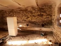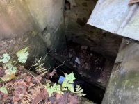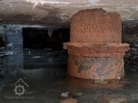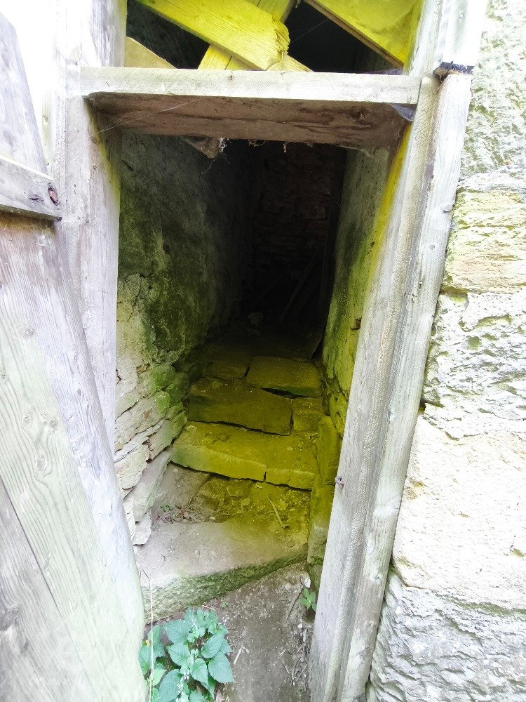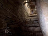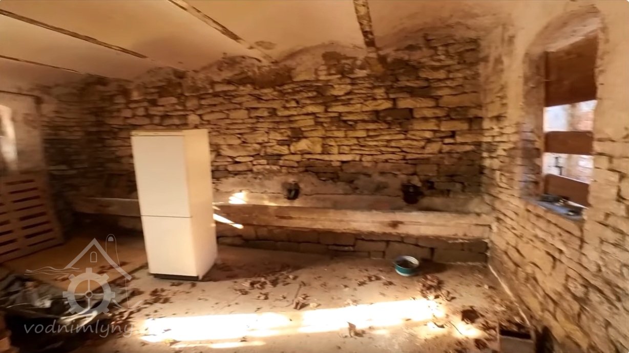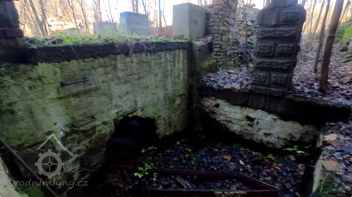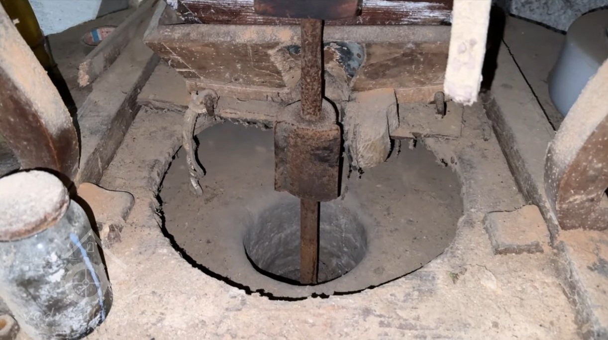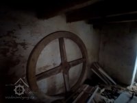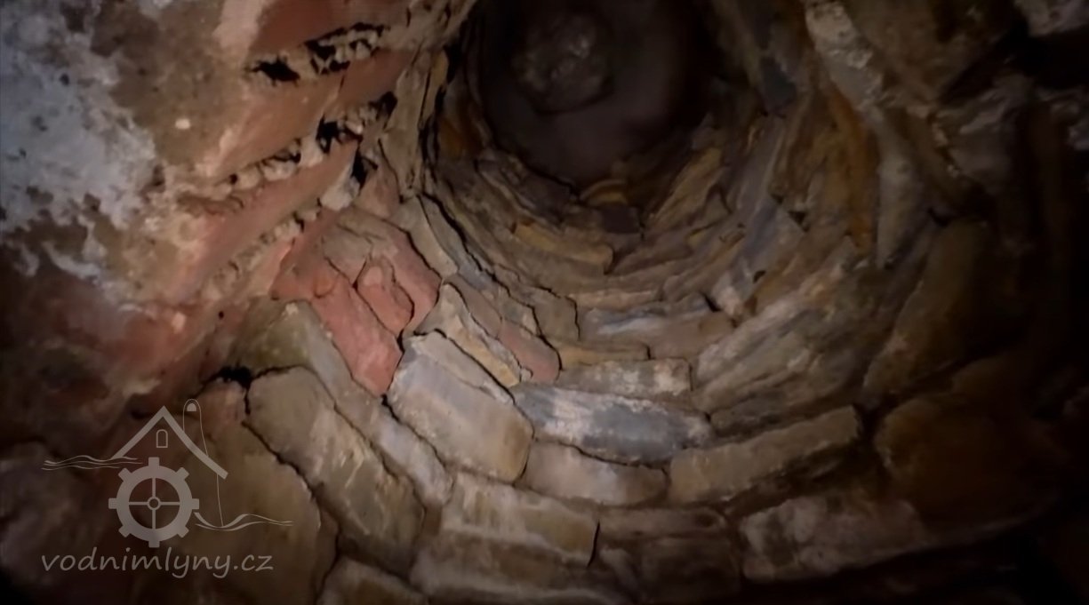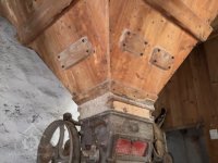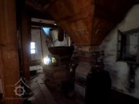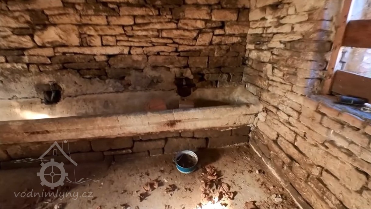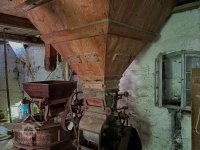 Kamenné složení s násypkou, 08 2025, © Adam Koval, (Prvky na obrázku: kamenné složení (šrotovací, mlecí), zásobník, násypka)