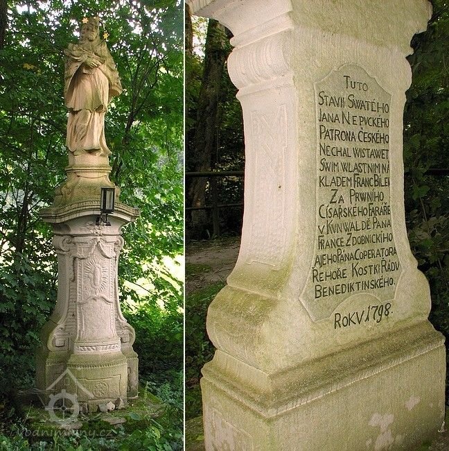 socha sv. Jana Nepomuckého, 07 2016, © Sovicka 169, (Prvky na obrázku: drobné sakrální památky, umělecké prvky (sochy, malby, reliéfy))