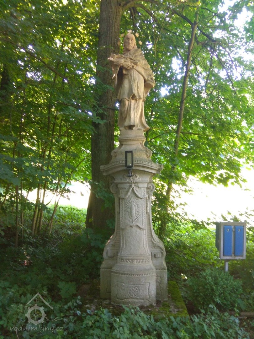 Socha sv. Jana Nepomuckého u mlýna, 08 2025, © Adam Koval, (Prvky na obrázku: drobné sakrální památky, umělecké prvky (sochy, malby, reliéfy))