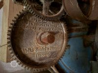 Značka výrobce Leopold Kašpar Velká Senice u Olomouce na loupačce, 09 2025, © Jiří Landis, (Prvky na obrázku: loupačka, značka výrobce na technologickém vybavení)