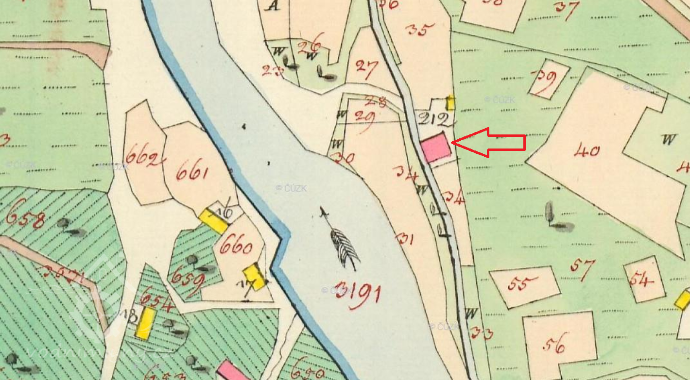 Původní vrchnostenský mlýn patrně ležel o 50 m západněji přímo na toku Ondřejnice, na současné místo byl přesunut až po vybudování Dolního neboli Nového náhonu.