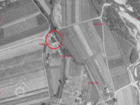 Mlýn kdysi stával na dnešní Wolkerove ulici, mezi levým břehem hutního náhonu a dnešní budovou č.p. 279 prodejny stavebnin Pro-Doma. V tomto místě kolem vodního náhonu jsou dodnes patrné betonové zpevnění břehů a patka pro uchycení vodního kola. Na parcele bývalého mlýnu a pozdější pily stojí původní zděný objekt, v minulosti sloužící jako místnost pro pilaře. Dle sdělení nynějšího majitele budovy Romana Němce, se zachovala jen proto, že po dobu znárodnění až do restituce sloužila jako zázemí pro řidiče spotřebního družstva Jednota , které na přilehlých pozemcích provozovalo stavebniny. Dřevěná pilnice, brusírna a sklad byly zbourány dle demoličního výměru z r.1981. Mlýn a později pila byla situována asi 40m pod soutokem hutního náhonu s jeho pomocným regulačním kanálem, na pozemcích bývalého fojtství mezi Hamrem č.7 Anton Theodor a arcibiskupskou válcovnou, později známou pod názvem Rádlo.