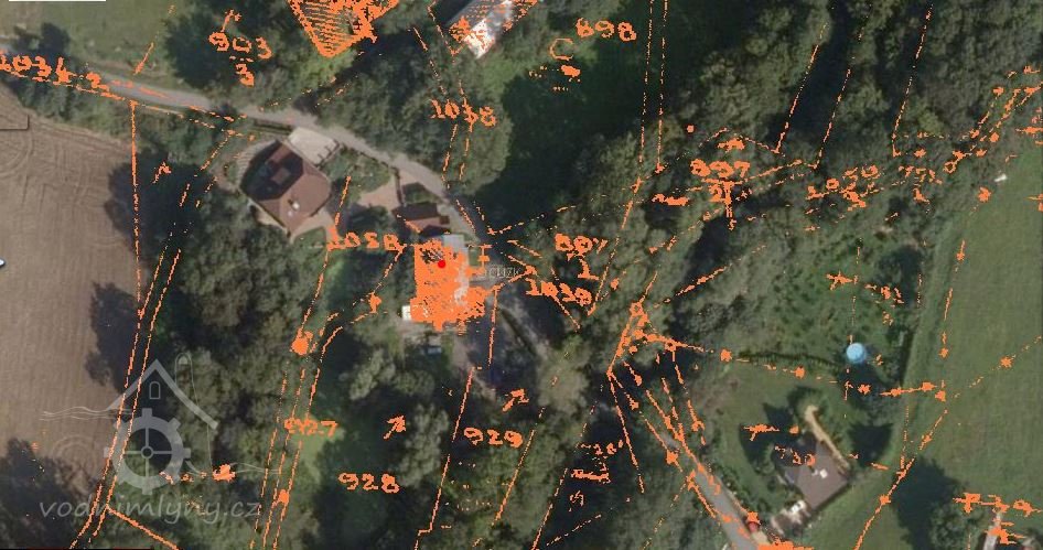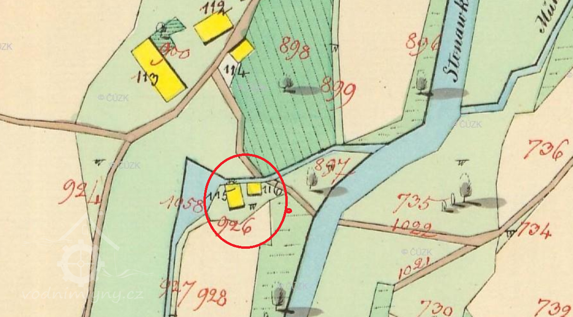 Horní mlýn čp. 66 (dřívější čp.) Gustava Suchánka byl do r. 1937 poháněn vodním kolem na horní vodu, které pak nahradila turbína.