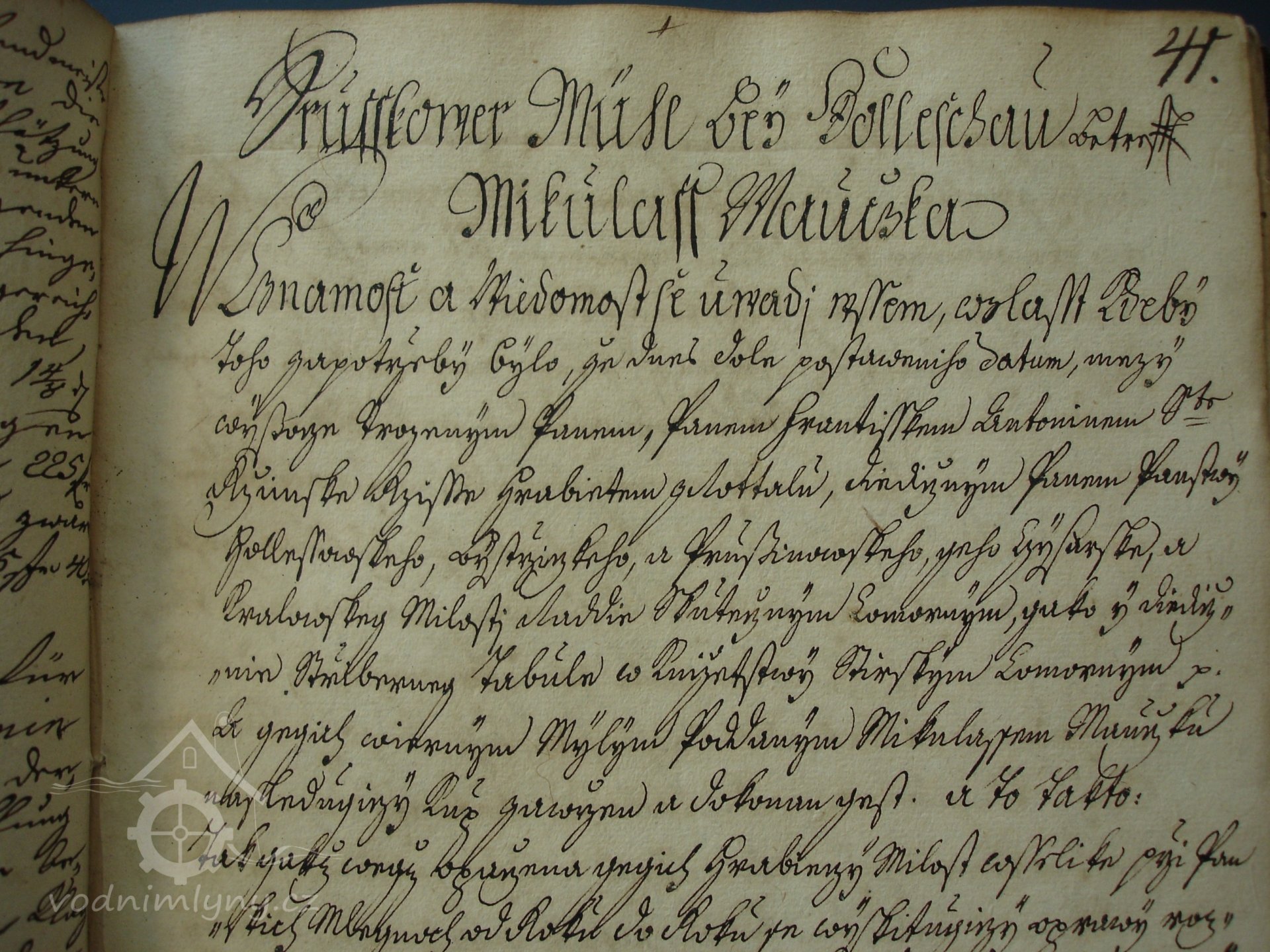 Nýbrž i vše mlejnský stavení v dobrém a náležitém stavu jakožto jejich vlastní drželi a zachovali odkudž že zaprodávala mnohokrát opakovaná hraběcí milost