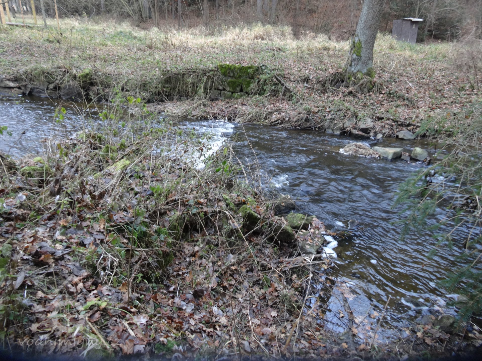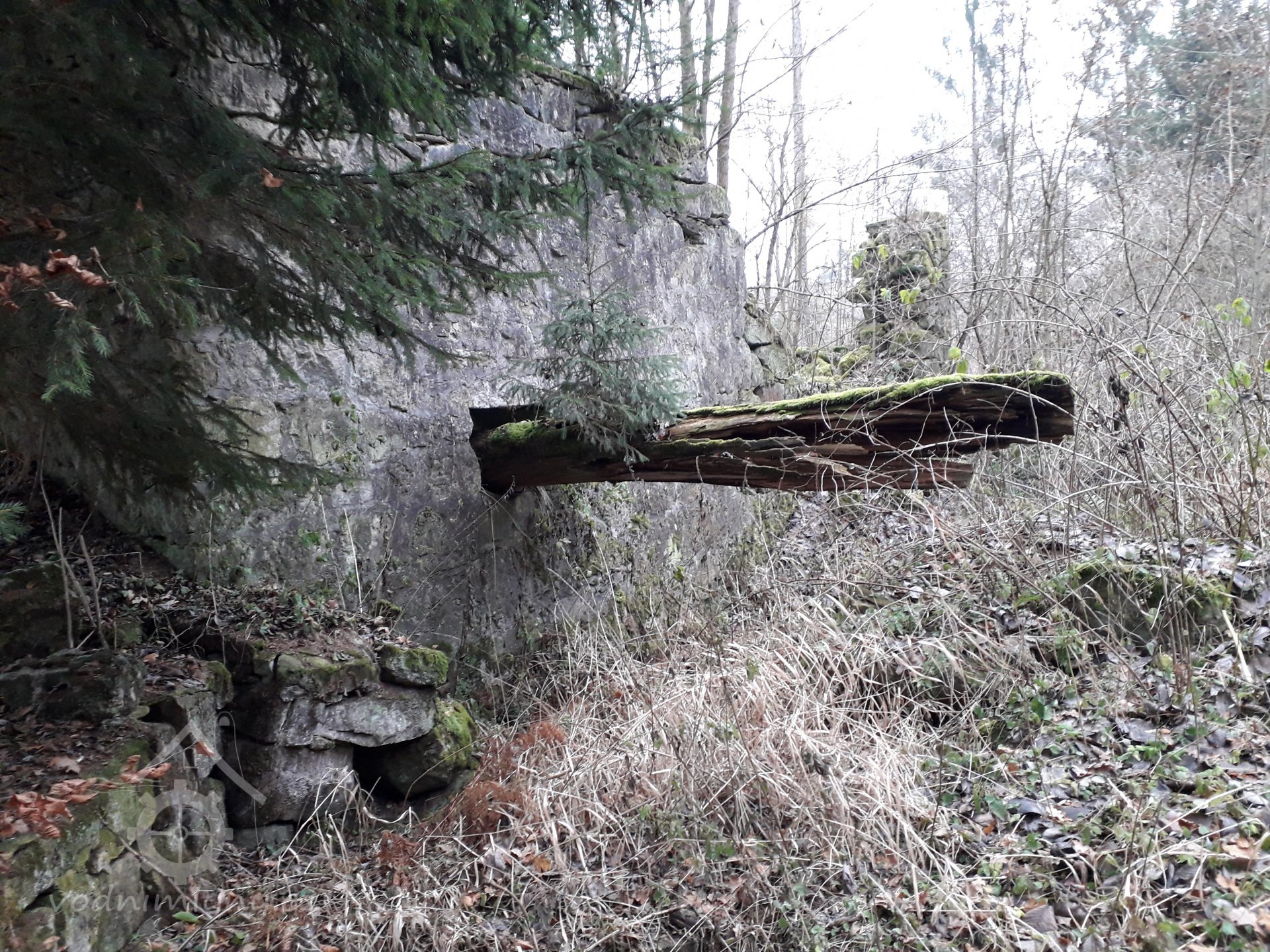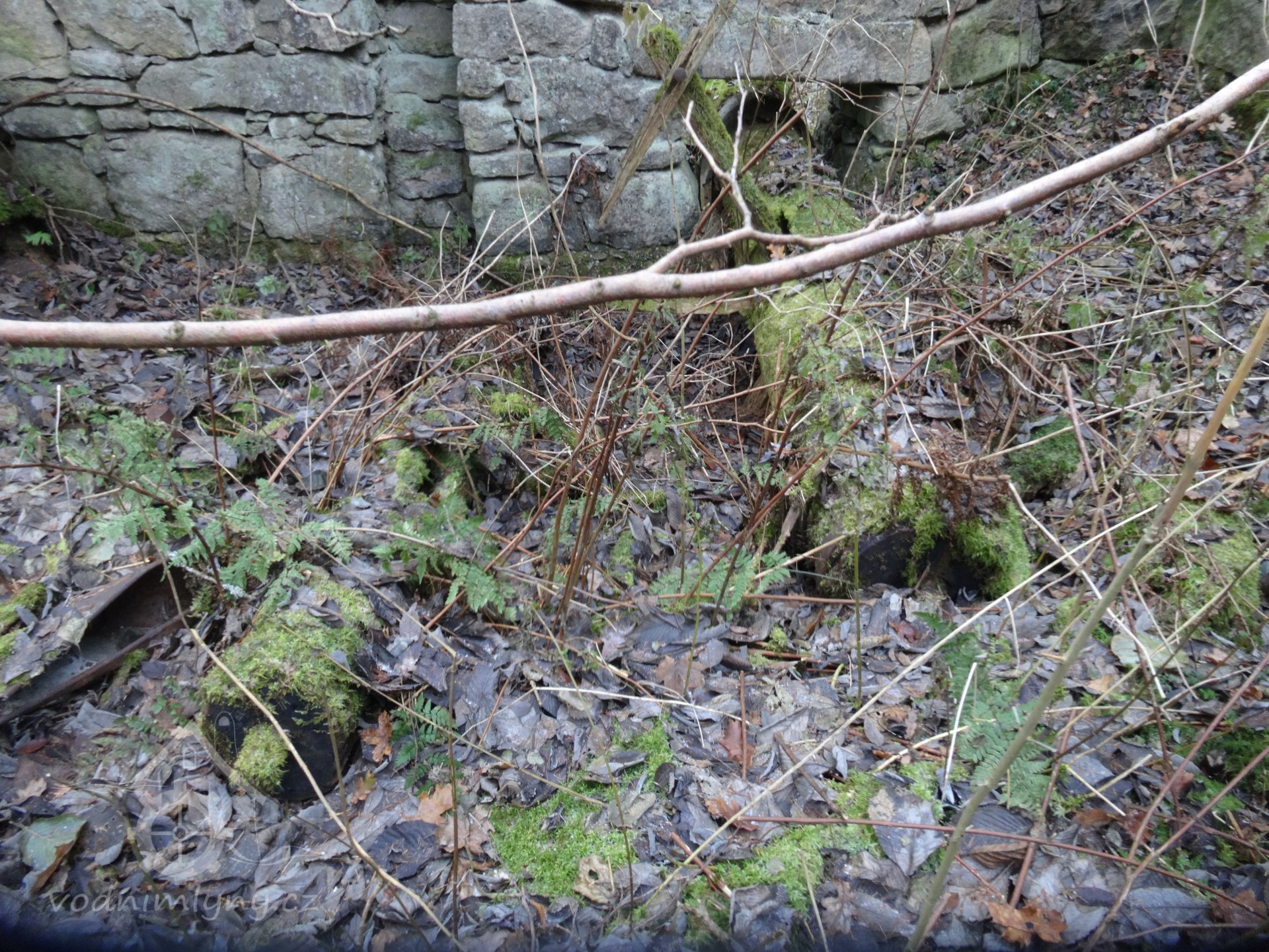 Po vodním kole zůstal dodnes zbytek hřídele trčícího ze zdi mlýnice do žlabu
