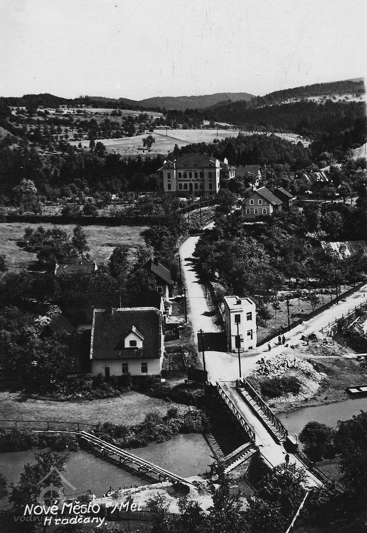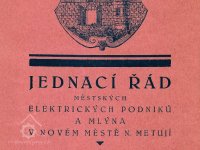 V našem severovýchodě z menších venkovských měst bylo Nové Město nad Metují jedno z prvních, které mělo elektrické osvětlení. Byl to tehdejší mlynář Jan Voborník, který koupil mlýn v Novém Městě nad Metují a zbudoval v něm elektrickou centrálu. Výroba proudu se zde děla jednak vodní silou a jednak parou, poněvadž jako reservu si postavil lokomobilu. Elektrický proud dodával městu pro veřejné osvětlení a osvětlování radnice a mimo to i některým občanům. Jelikož postavení elektrárny si vyžádalo velkých investic a majitel zápasil s finančními obtížemi, neměl možnost v pozdějších letech udržovati svoje zařízení v takovém stavu, aby odpovídalo době, takže docházelo k častým poruchám a z toho plynoucím nepříjemnostem. Město začalo uvažovati, zda by nebylo rozumnější, přestati odebírati proud od cizího dodavatele a raději si vybudovati svoji vlastní elektrárnu. Pohnutkou k tomu bylo hlavně to, že obec vlastnila již jednu vodní sílu nad mlýnem Voborníkovým, a sice v budově 165/b, kde byla městská vodárna. V roce 1910 rozhodlo obecní zastupitelstvo, aby tato provozovna byla rekonstruována tak, aby mohla sloužiti dále jako vodárna a mimo to i pro výrobu elektrického proudu tak, aby celá vodní síla 63 ks byla plně využita. Tak se stalo, že v r. 1911 nově zřízená městská elektrárna, nákladem 90.000 K, započala svoji činnost a již první rok měla 52 svých konsumentů. Smluvní poměr o dodávce elektrické energie z elektrárny Voborníkovy byl zrušen a pro případ nedostatku vody uzavřena smlouva s elektrárnou krčínskou o dodávání elektrické energie do městské sítě, rovněž v případě poruch nebo nedostatku proudu. Od této doby rostla elektrárna značně, takže majitel konkurenčního podniku Jan Voborník jednak pro svoje stáří, jednak z důvodů konkurenčních bojů nabídl obci ke koupi svůj podnik. Zásluhou tehdejšího starosty města, p. Ant. Nyklíčka, jako prozíravého hospodáře, se stalo, že město nabízený objekt v r. 1925 na podzim koupilo za cenu 465.000 Kč s celým příslušenstvím. První práce pak byla přebudovati druhou elektrárnu na stejný proudový systém, jako měla elektrárna první. Jelikož elektrovodné sítě původní elektrárny a jiná zařízení nevyhovovaly již tehdejším požadavkům, bylo rozhodnuto provésti nejen rekonstrukci nově koupené elektrárny, ale i dosavadních zařízení městských tak, aby vyhovovala nejen v době přítomné, ale i v budoucnu. Rekonstrukce byla zadána fě Wagner a spol., Olomouc, která provedla v elektrárně dříve Voborníkově změnu proudu stejnosměrného na střídavý, třífázový o napětí 3X220/127 Voltů, vybudovala nové elektrovodné sítě včetně transformačních stanic a rekonstruovala všechny domovní přípojky nákladem 1,700.000 Kč. Teprve takto vybudovaný podnik mohl rozvinouti náležitě svou činnost a starati se o prodej elektrické energie a vše ostatní tak, aby nejen stačil nésti břemena z investovaného kapitálu a ostatní režii, ale aby splnil svůj hlavní účel, dodávati proud za přiměřené ceny a přitom pomáhati obci finančně. Dnes, v době 28 roků svého trvání, z původních 52 konsumentů stoupl jejich počet na 1.560.