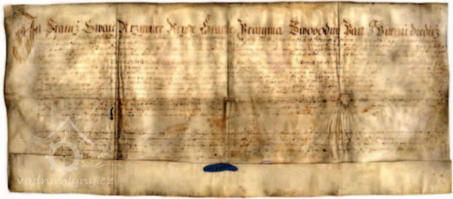 V listině z 30. 10. 1708 frýdecký pán František hr. Pražma z Bílkova potvrzuje kup mlýna na mouku s jedním kolem Řehořovi, poddanému z Kaňovic a potvrzuje listinu z roku 1617, ve které Jan st. Bruntálský z Vrbna prodal mlýnek na mouku Janu Skokanovi.