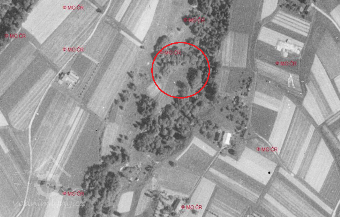 Na letecké mapě 1937 patrná pouze plocha rybníčku