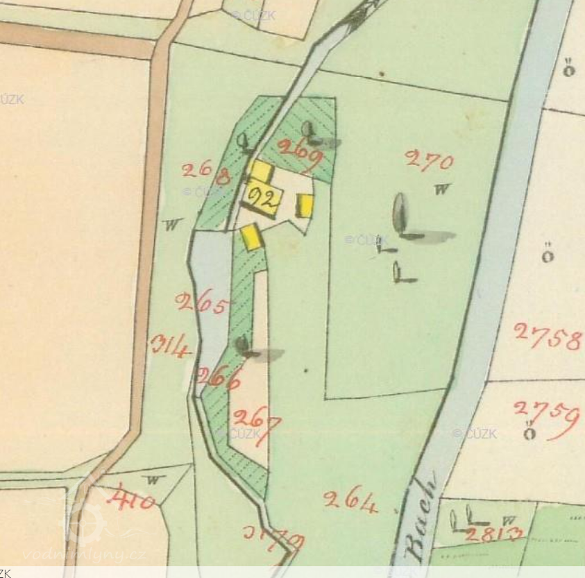 1793 vybudoval mlynář Jan Walach mlýn při chalupě č. 121 pod Dědinou (.Dziedzinu).