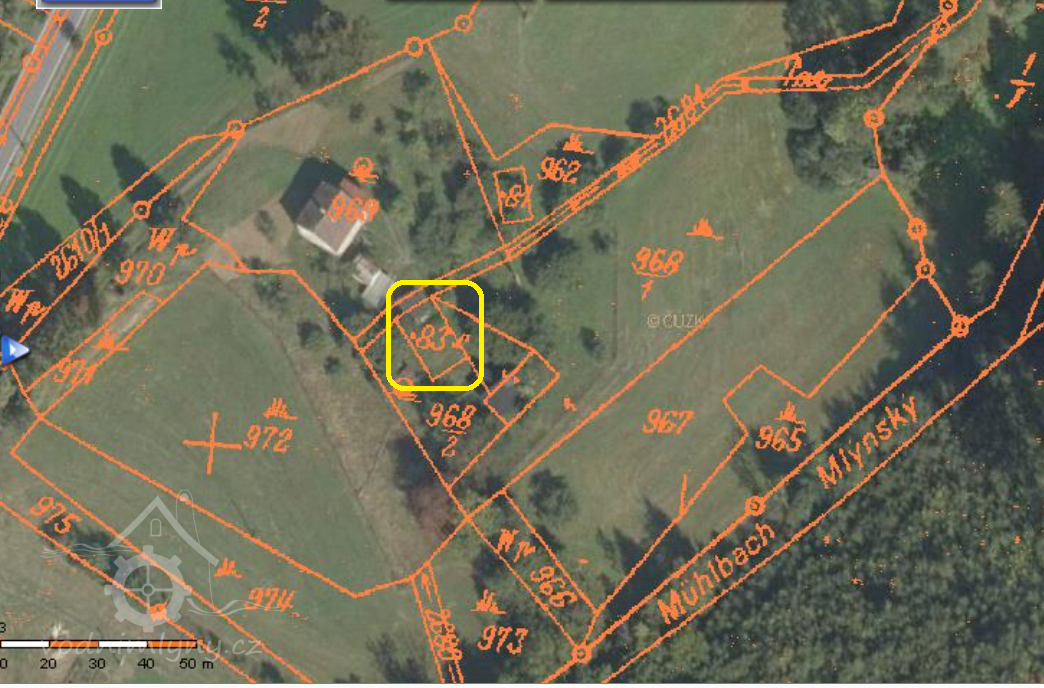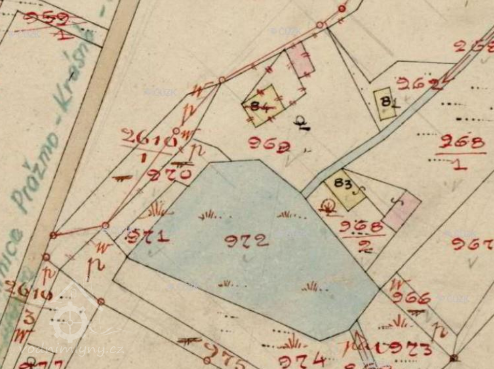 V Krásné se uvádí k roku 1843 (vceňovací operáty) dva mlýny se dvěma složeními, které zpracovaly ročně 20 měřic pšenice, 280 měřic žita. Zdejší pila měla roční kapacitu 300 desek.
