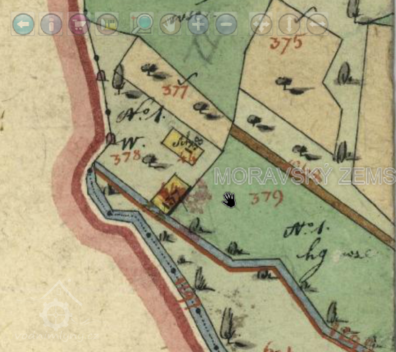 poháněn vodou. Stavba byla na samotě, při prvním číslování dostal dům číslo popisné 44.