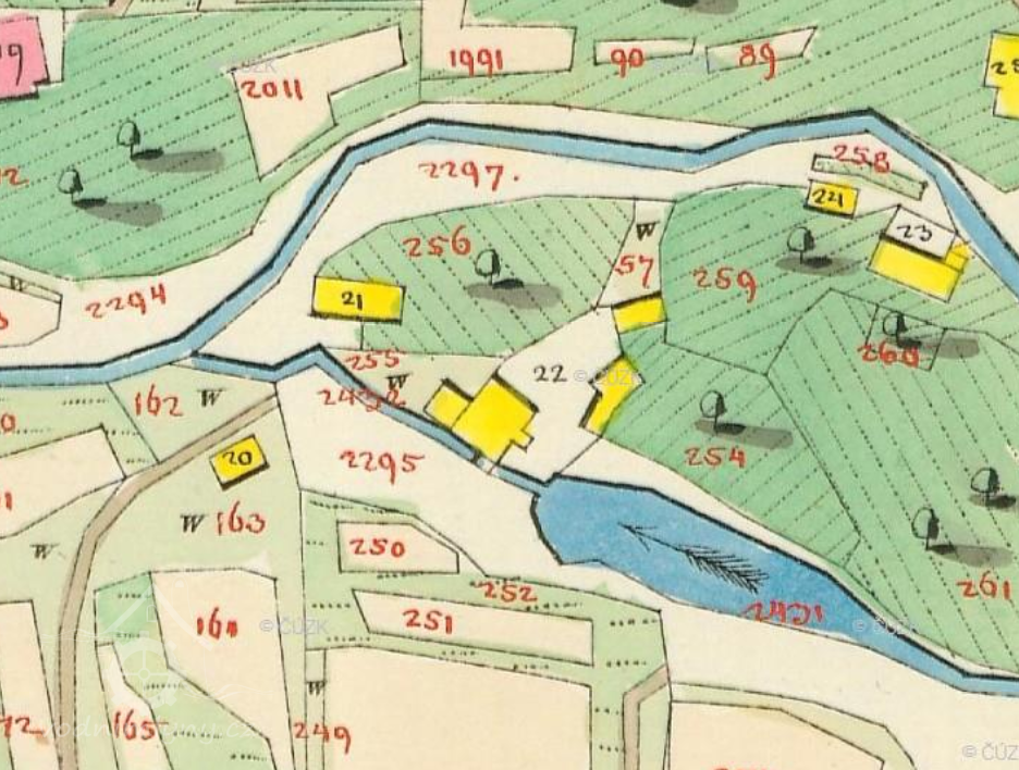 1843: 3 mlýny na horní vodu zpracovaly 50 měřic pšenice, 150 měřic žita, 30 měřic ječmene a 100 měřic ovsa.
