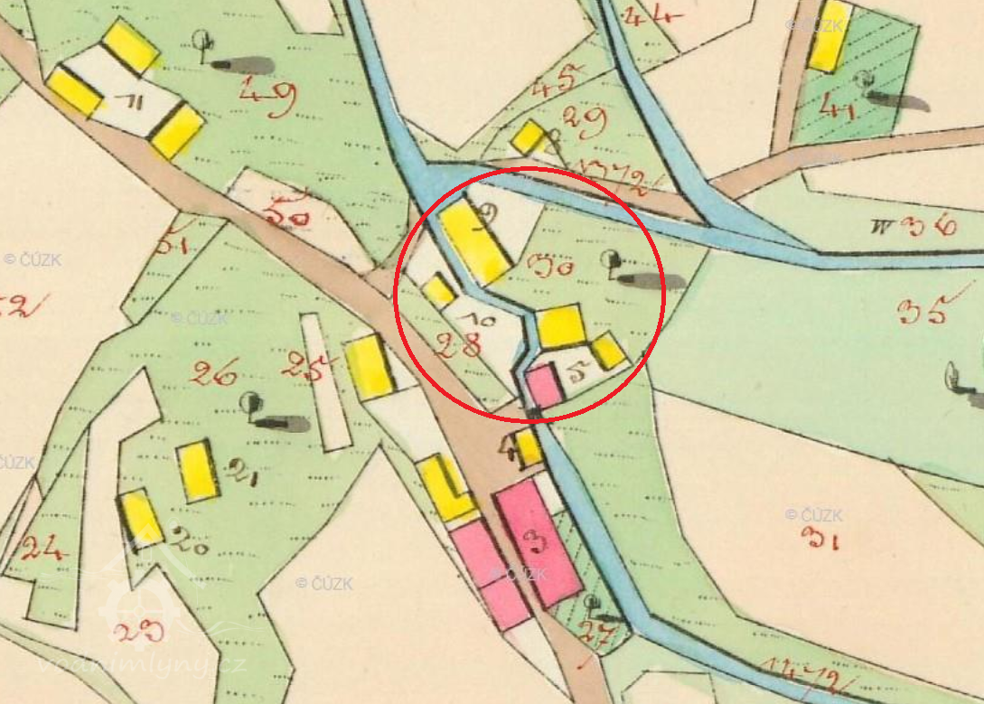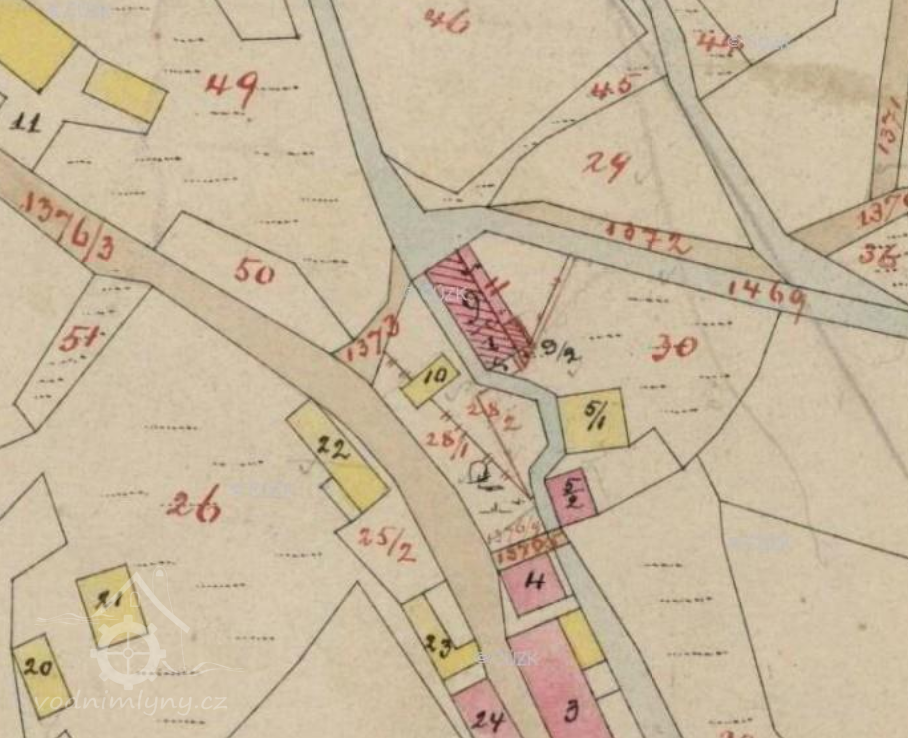 K roku 1843 se tu uvádí 3 mlýny s jedním složením, které ročně semlely 25 měřic pšenice, 120 měřic žita, 10 měřic ječmene a 50 měřic ovsa.