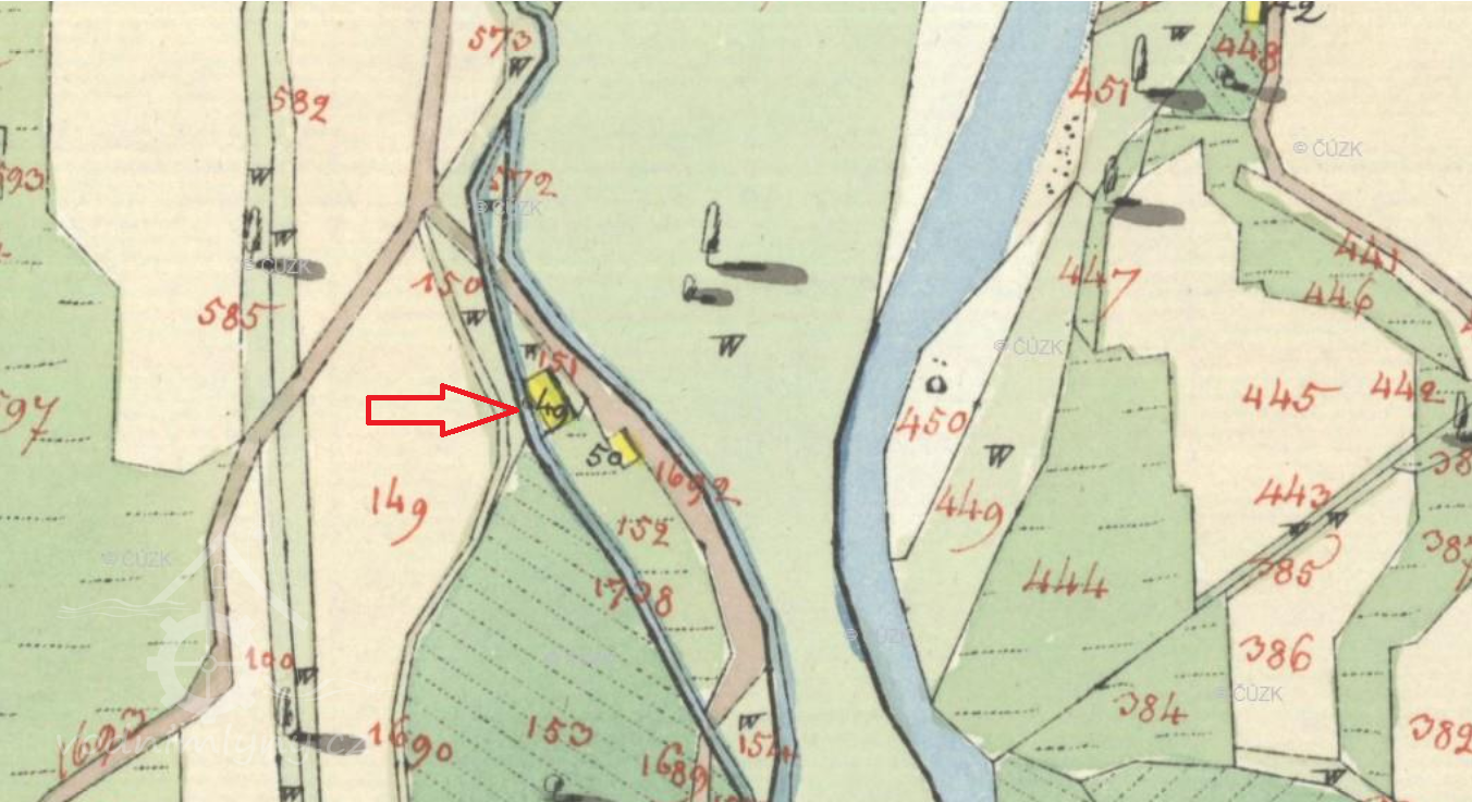 Kolem roku 1760 Adam Hradský od otce svého grunt selský i s mlýnkem koupil. Kolem roku 1795 Jan Hradský od otce svého přejal volný grunt a valchu s mlýnkem č. 3. 4. 5. Tři zdejší mlýny zpracovaly v polovině 19. století ročně 92 měřic pšenice, 168 měřic žita, 260 měřic ječmene, 120 měřic ovsa.