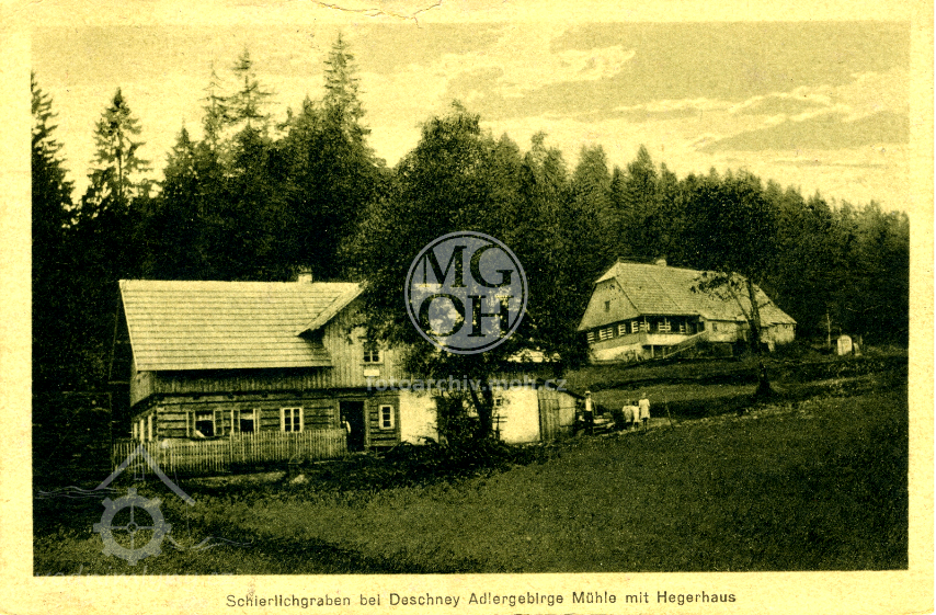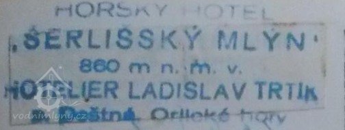 Šerlišský mlýn na pohlednici, před r. 1951, © autor neznámý (orlickehory.net)