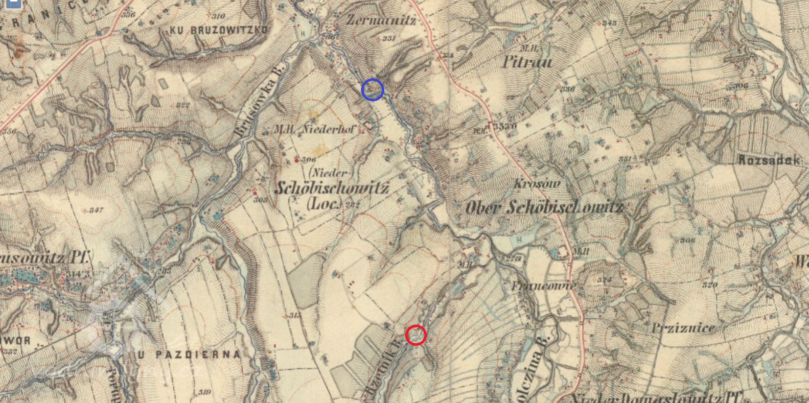 1600 Horní Soběšovice měly 19 usedlostí, z toho 6 selských, 9 zahradnických, 1 domkařskou s polnostmi, 1 dědičného mlynáře a 2 řemeslníky.