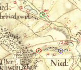 Z berního sumáře z roku 1600 vyplývá, že majetek Dolních Soběšovic sestával z 10 usedlostí, z toho 7 zahradníků, 2 domkaři s polnostmi a 1 nájemný mlynář.