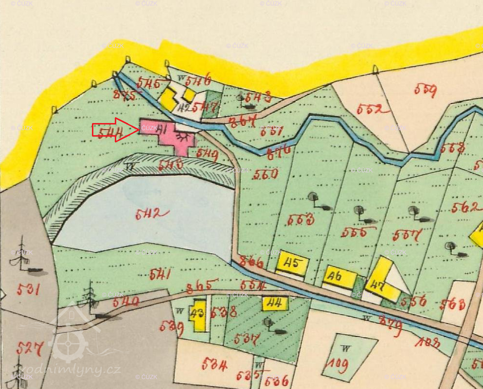 O 7 roků později, v roce 1848, zde soupis poddaných uvádí mlynáře Frantze Schrötera, svobodného, věk 22.