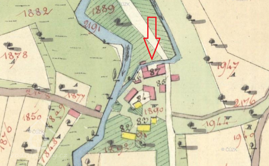 (Bývalý mlýn byl ale čp. 15, nikoliv čp. 19!)