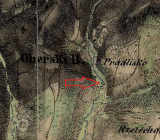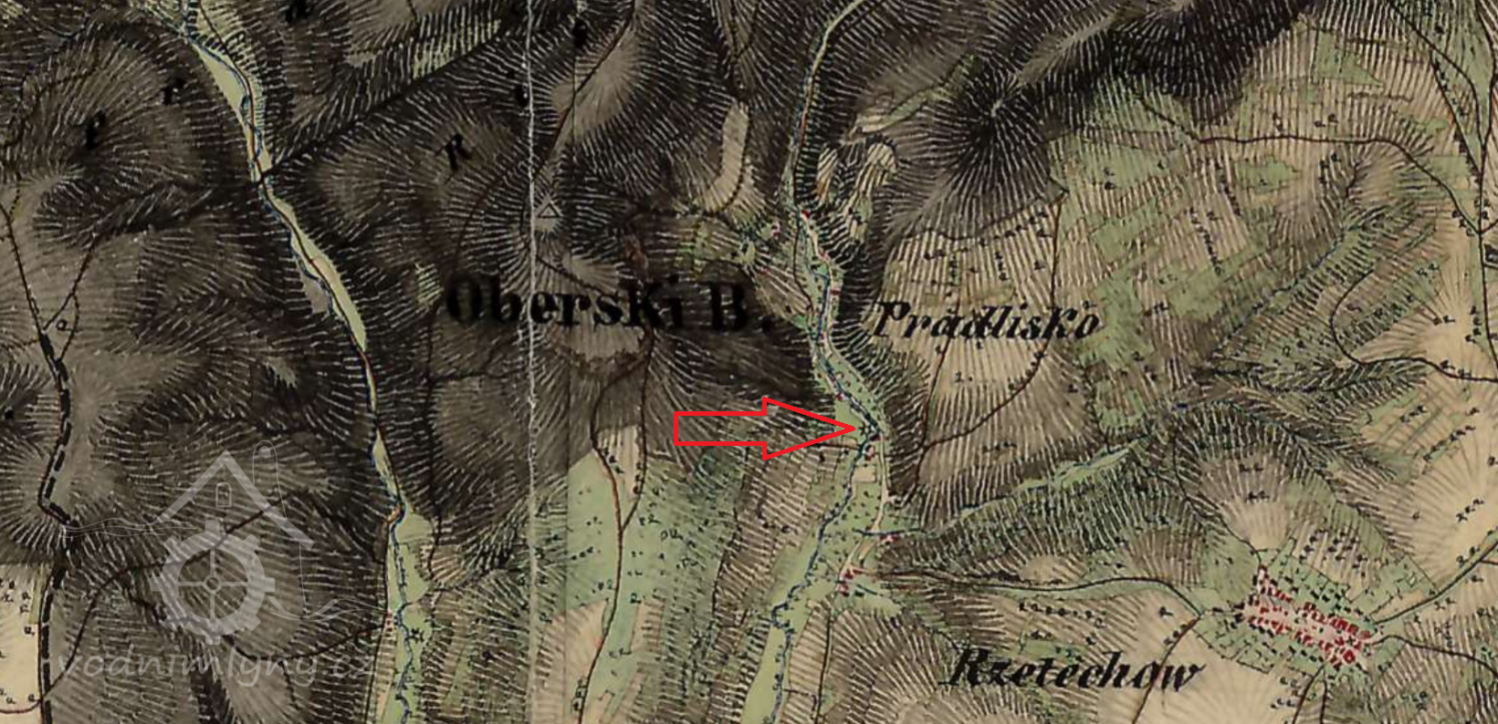Mlýn se nacházel mimo obec v lokalitě Pradlisko. Osada náležela původně katastrem k Řetechovu.